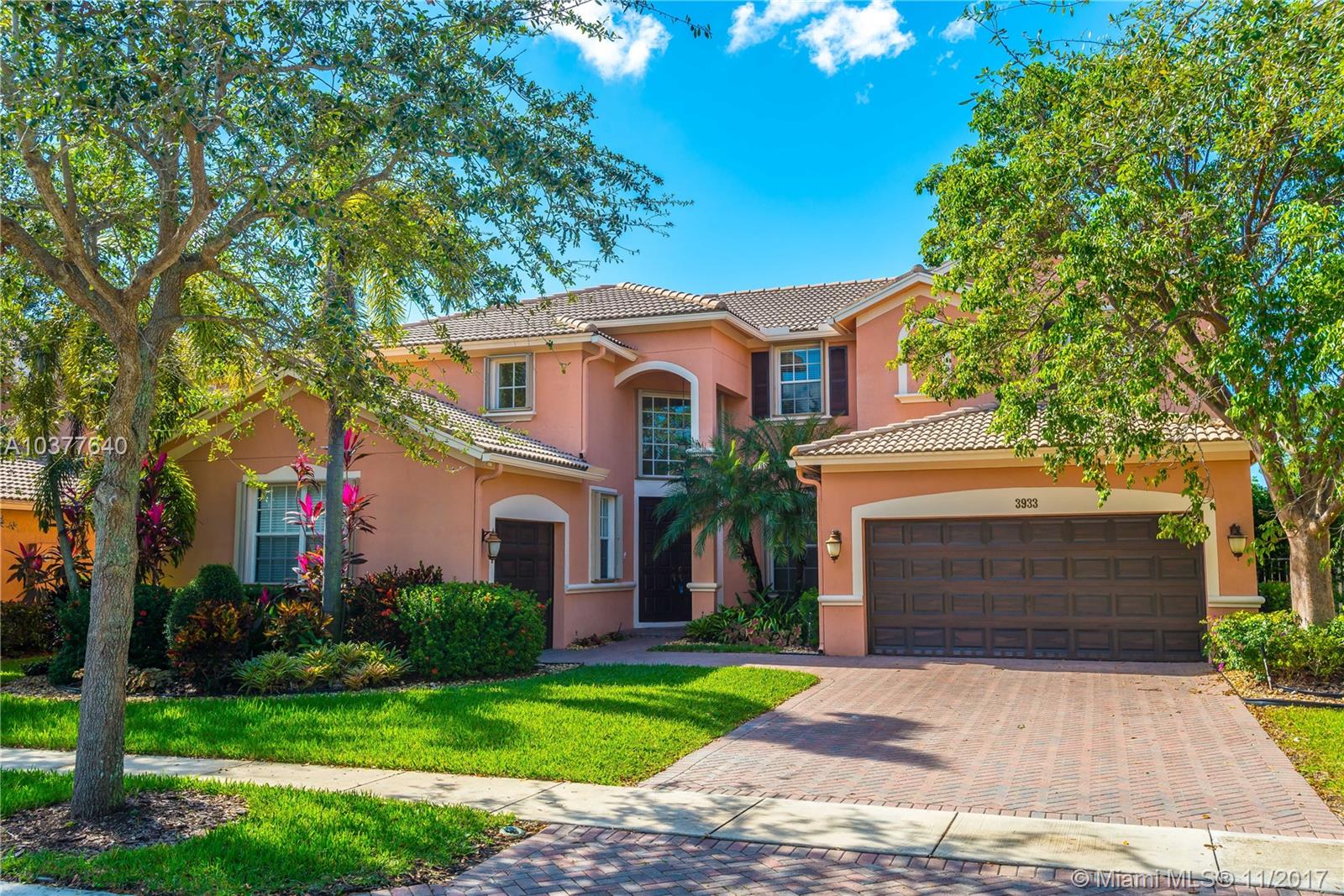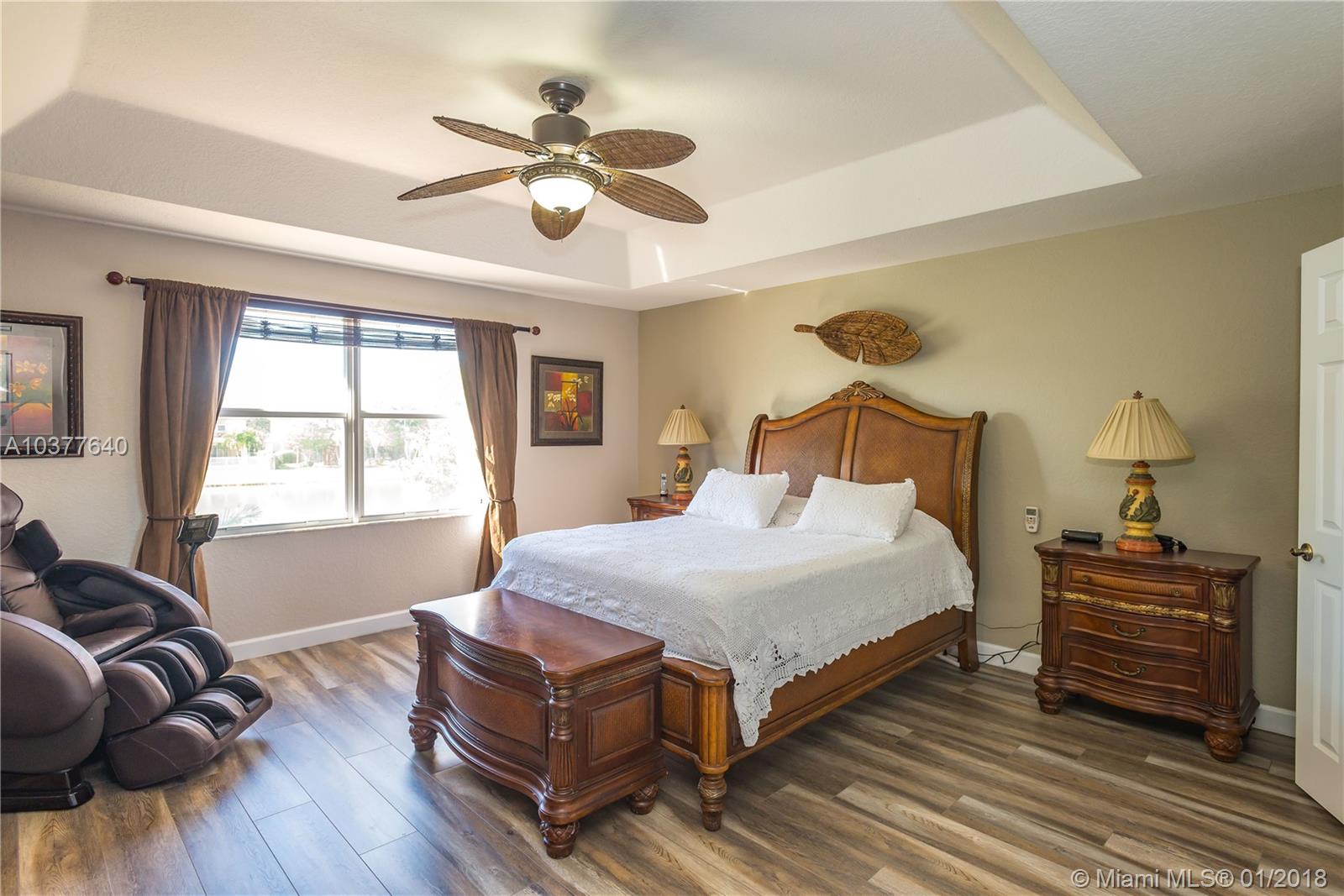 Beautiful bright two story home on large lake with fantastic views and sunsets. One bedroom and full bathroom on first floor. two story entry with double doors, kitchen has hardwood 42" cabinets,granite counters, new high end Stainless Steel appliances, wood flooring throughout entire second floor and stairs,large extended patio, accordion shutter. Master bathroom has large separate stall shower and jacuzzi tub, his & her vanities and much much more. Community offers club house with pool, tennis, volleyball,basketball court, play ground and more.