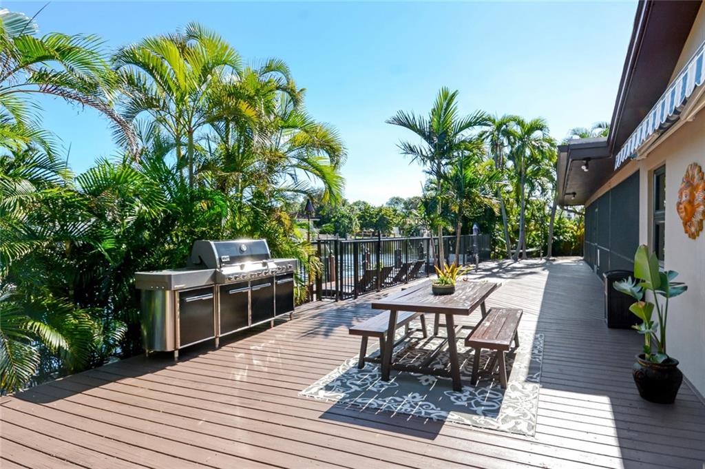 It doesn't get better than this. 130' on the water with a huge lanai & deck and a private tropical pool/spa. East of US1 on a quiet cul-de-sac in the gated Bal Harbour. The gorgeous new open kitchen has Jenn-Air stainless appliances facing the water which opens up to a large screened patio. 3 beds with one set up as an office, 2 baths and a 2 CG. Marble floors and impact windows/doors. Too many extras inc. gas tiki torches. Beautiful day and night. Now with a higher bridge clearance.