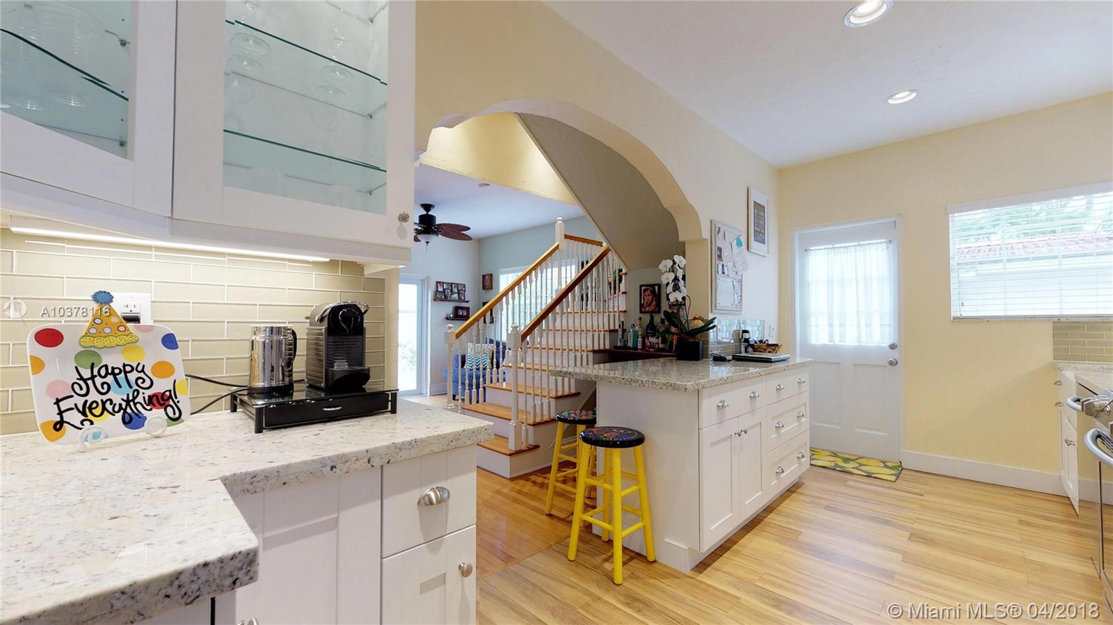 Beautiful old Spanish two story home on quiet street in the heart of Coral Gables. Home features 4 bedrooms, 3 baths, charming fireplace, wood floor, updated kitchen w/ granite, SS appliances, and contemporary finishes. Master bedroom has a private balcony overlooking a tree-lined street. Lovely backyard has built-in grill, perfect for entertaining family and friends & room for a pool. Located within A+ school district, centrally located near Gables restaurants, shopping & entertainment.