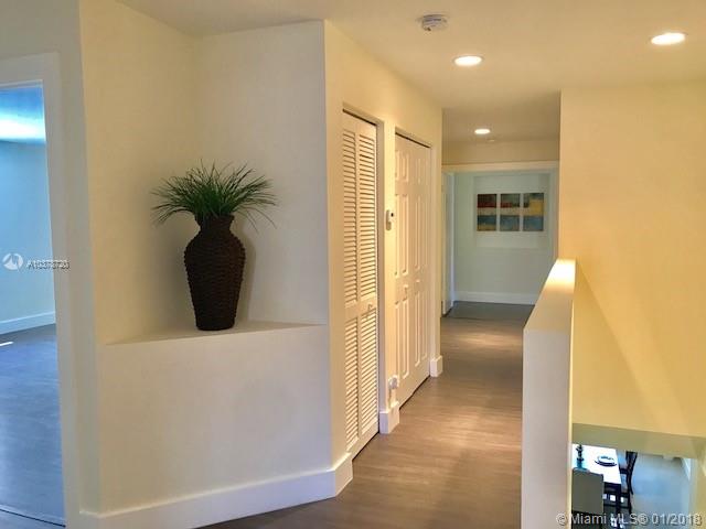 Tucked on a private corner lot, hedged for privacy, this spacious floor-plan shows like a model. New Renovations include porcelain tile floors in living areas and laminated wood up. Kitchen with granite counter tops, wood cabinets, stainless steel appliances including wine cooler. Floor-plan offers 6 beds and 4 baths & 3car garage w/ Full bed/bath down. Accordion shutters, covered terrace and porch.