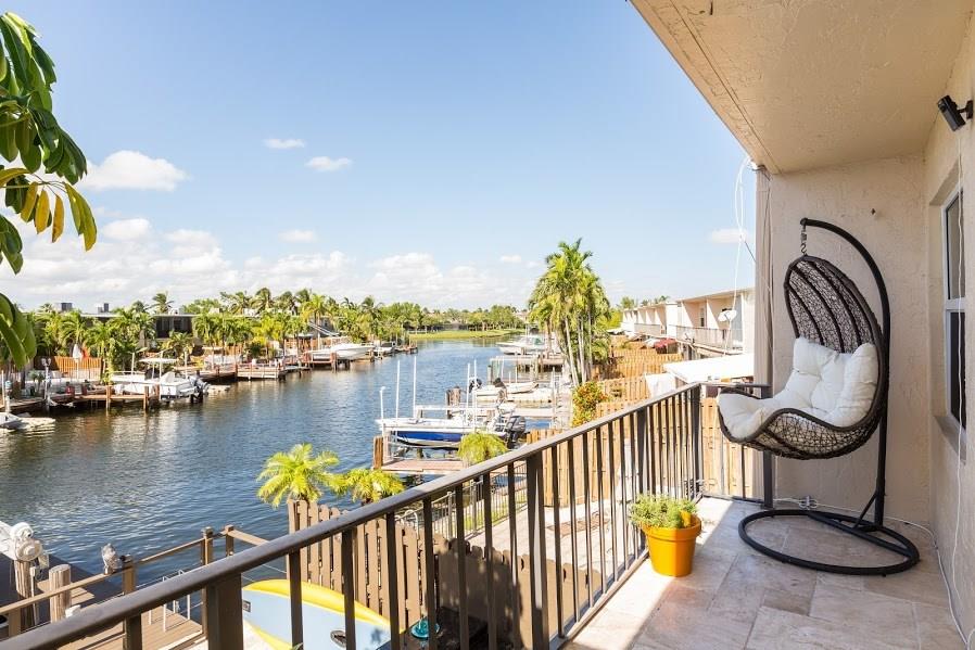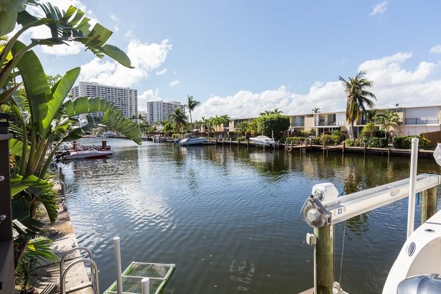 Waterfront model townhome in East Hallandale. Easy walk or bike to beach. Renovated 3 bedroom townhouse featuring a boat lover's dream at a fabulous price. The oversized deck patio has a spa Jacuzzi hot tub, summer kitchen wiith built in barbecue, sink and refrigerator. All this with boatlift and your own private dock. The home is all wood floors, open granite kitchen with all the bells and whistles. Master bedroom has balcony overlooking waterway. Updated baths, laundry room. Complex has pool/gym.