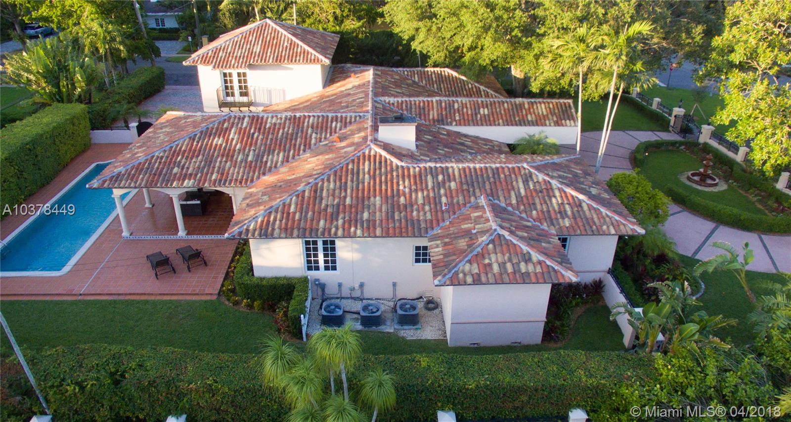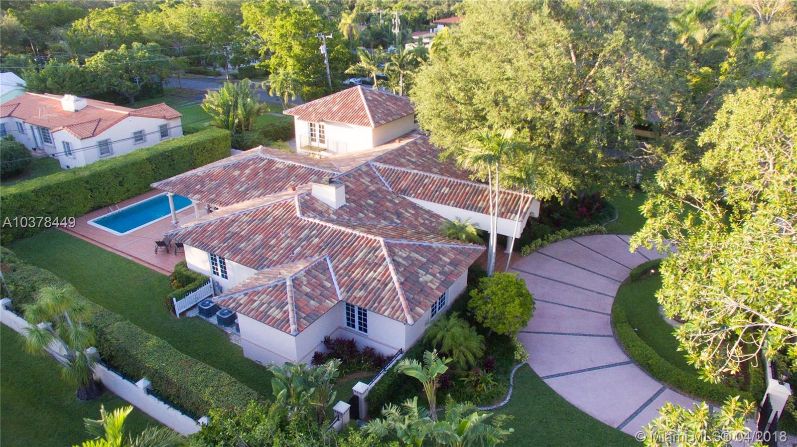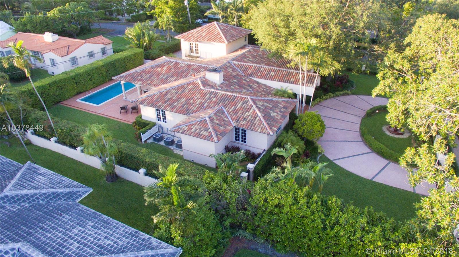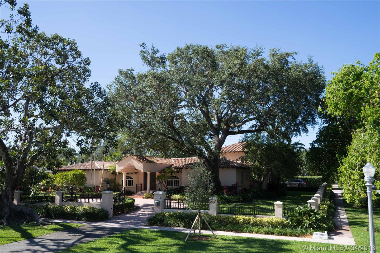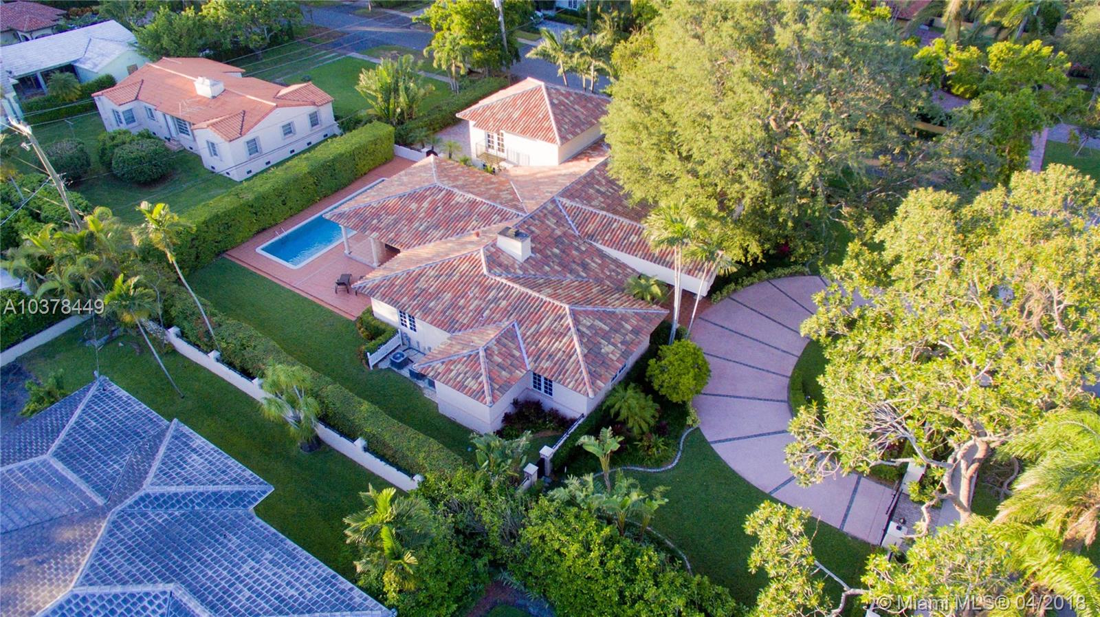 ***JUST REDUCED*** Immerse yourself in luxury in this 6 bedroom, 6 bathroom estate surrounded by oak trees and lush landscaping. Situated in a corner lot with a circular driveway, two-car garage and covered terrace. Elegant living space featuring: foyer entrance, marble and wood floors, fireplace, alarm, large master suite with marble bath and his/her closet, beautiful and spacious kitchen, impact windows and doors. Brand new roof and high efficiency air conditioning systems installed in 2017. Minutes away from Biltmore and Granada golf courses, Venetian Pool, Miracle Mile and Merrick Park.
