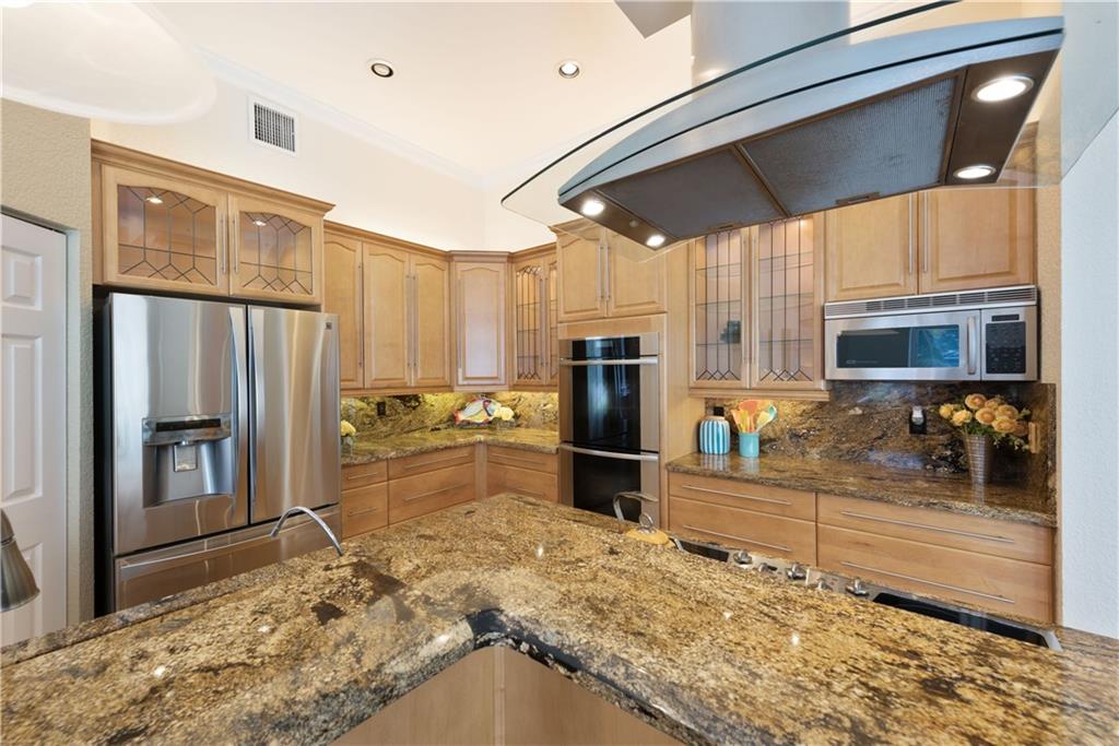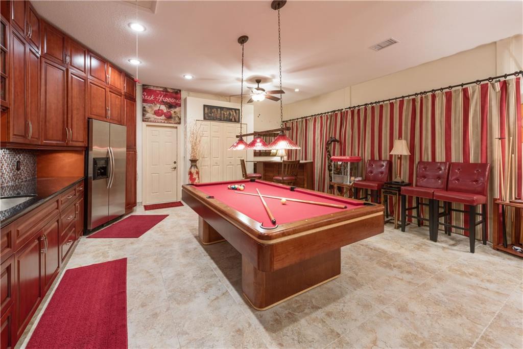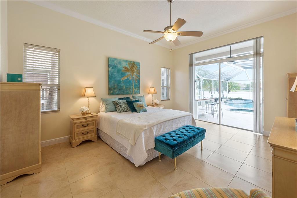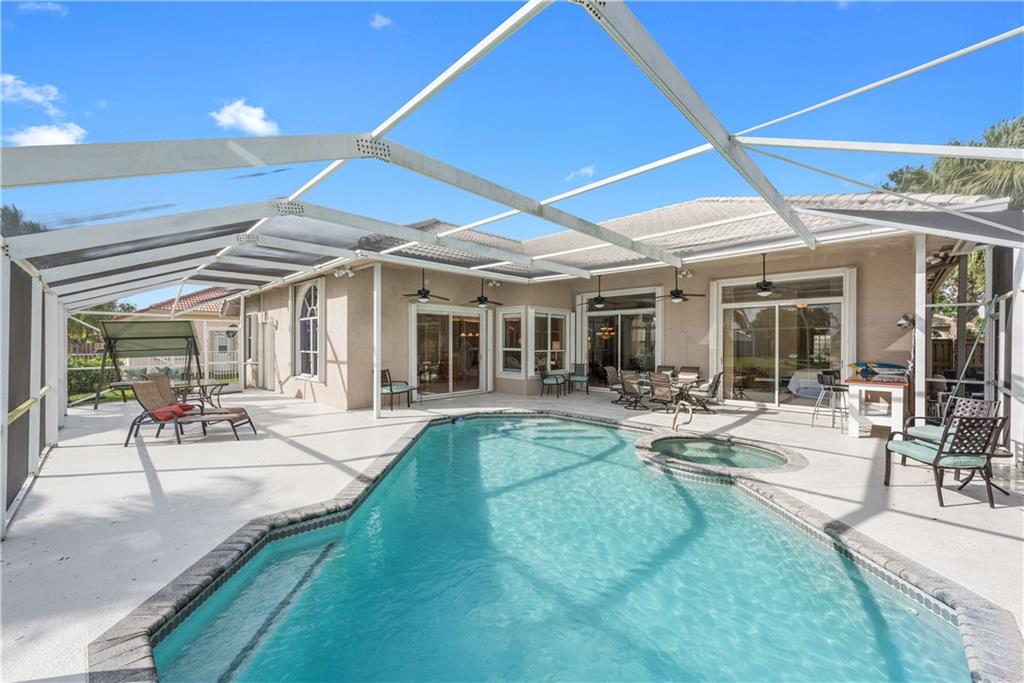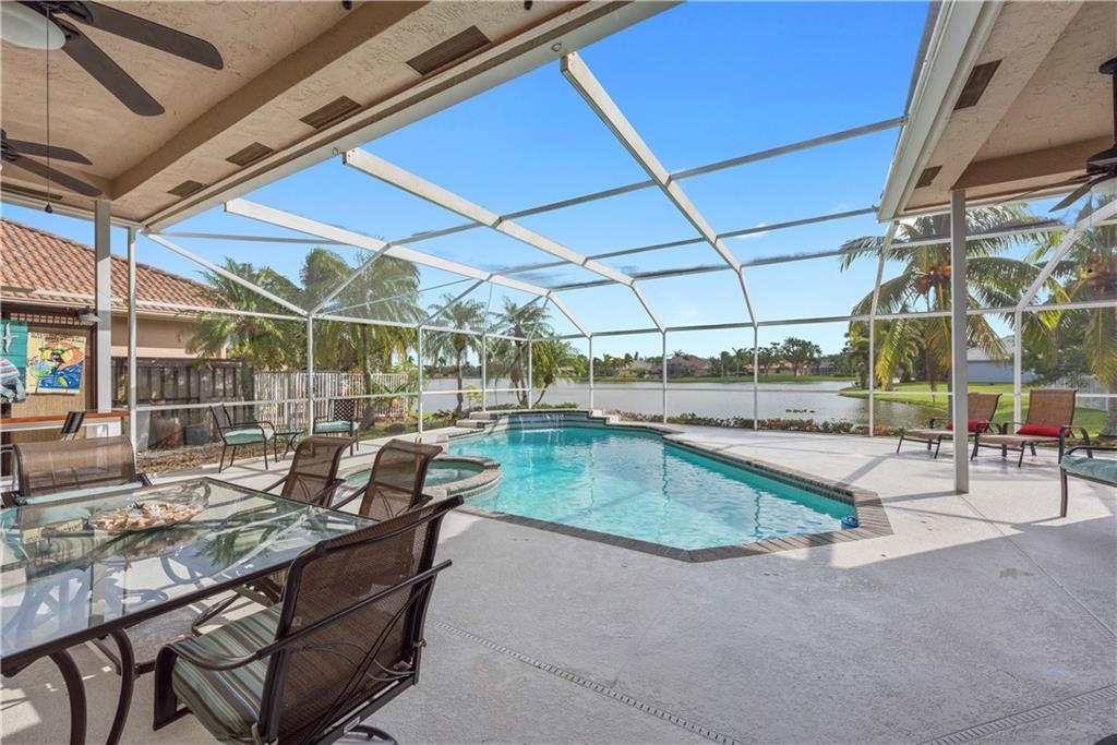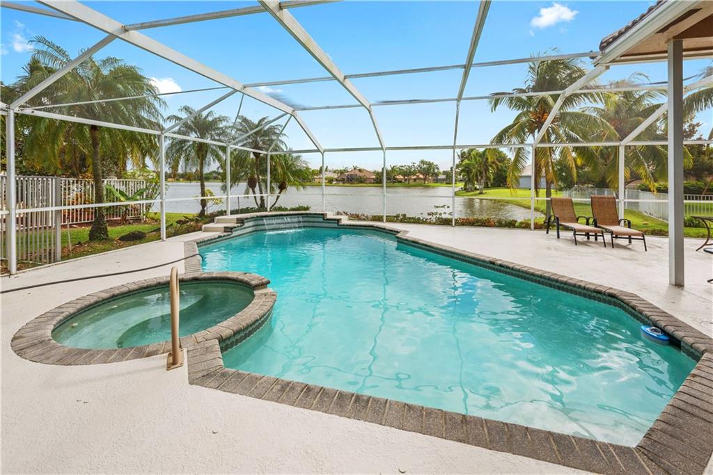 Large WATER FRONT home, gated neighborhood, fantastic for ENTERTAINING. Lakeviews are beautiful. Upgraded bthrms. Light&bright dining/family/living rooms w/vaulted ceilings. Gourmet ktn built for hosting: granite/highend appliances. Master ste: his/hers custom built-in, walk-in closets, w/private lakeview. Lrg screened-in patio: heated pool/spa/lounge area/bar/grill space. Custom cabinetry in office. Generator/shutters/impact windows. GAME ROOM decked out w/bar/pool table & wet kitchen! A must-see home!