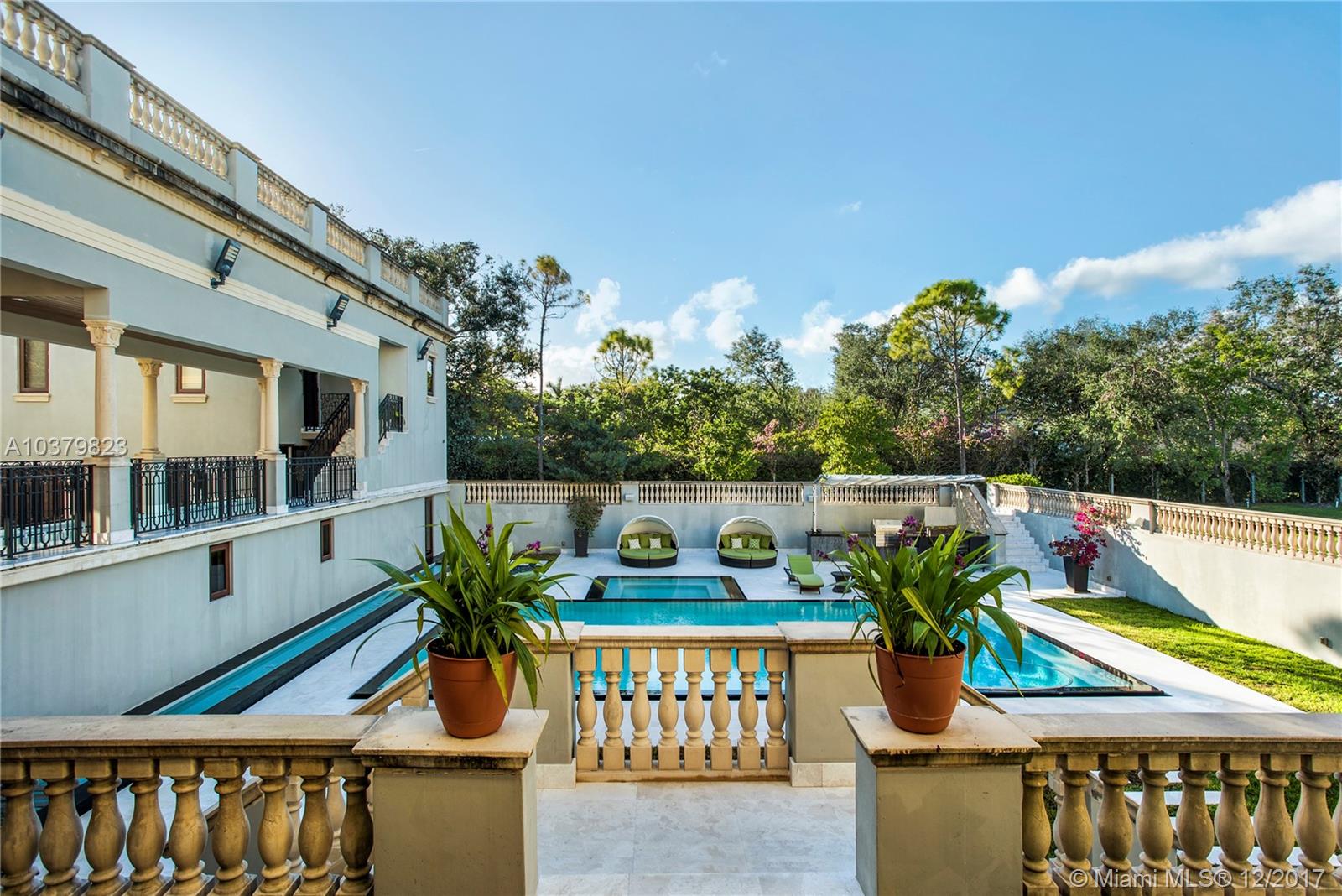 Sitting on one of Pinecrest’s most prestigious streets is this spectacular 15,800+/-sf Italianate Villa. Perfectly designed layout is ideal for a family or a multi-generational family with a 1BR/1BA guest/in-law suite. Lutron and Crestron systems, white glass floors, 1100 bottle eat-in wine cellar, 75KW generator, 16 seat home theater, billiard room, infinity pool with jacuzzi and 2 summer kitchens are just some of the amenities found throughout this estate.