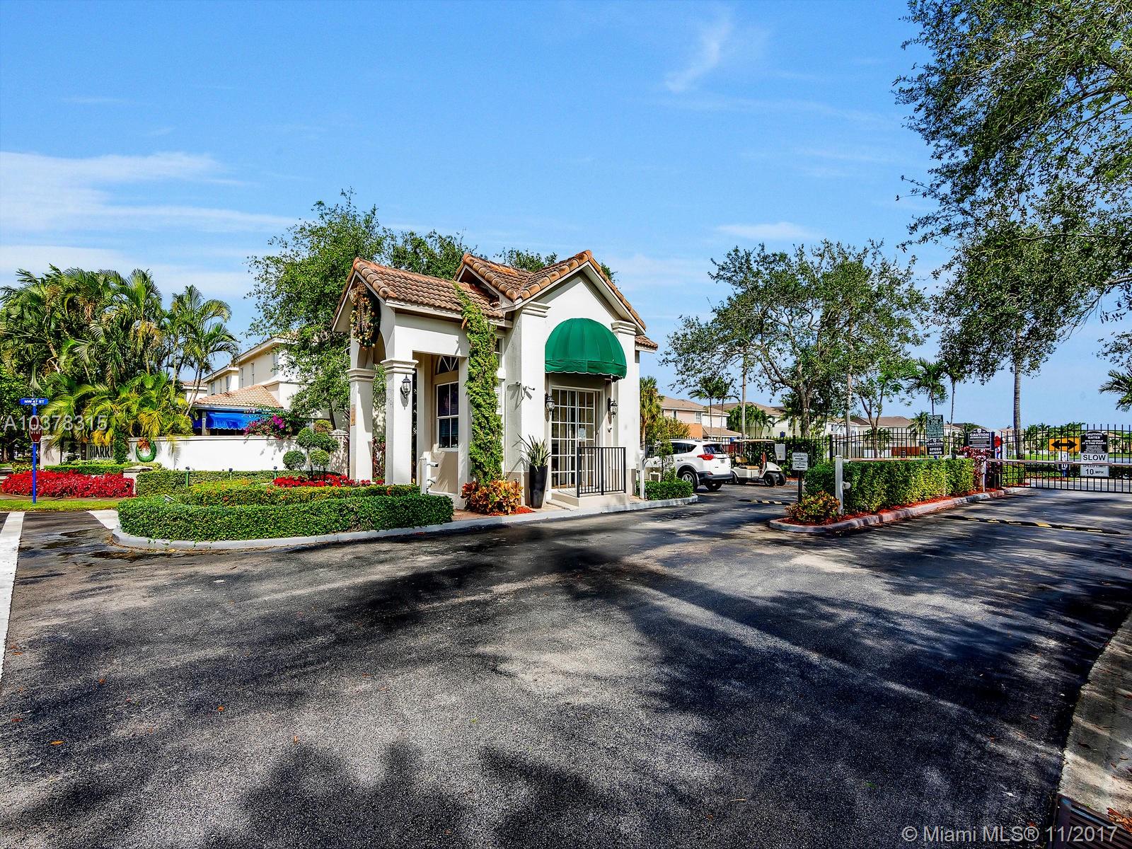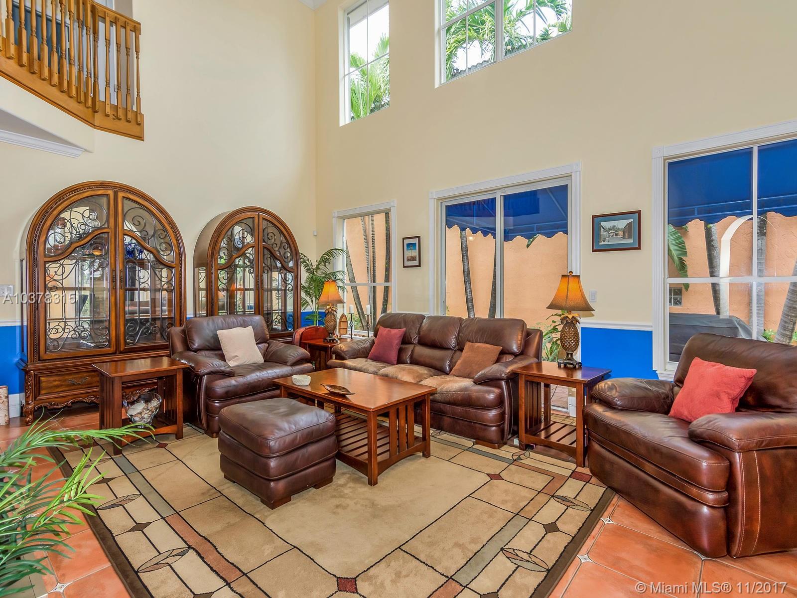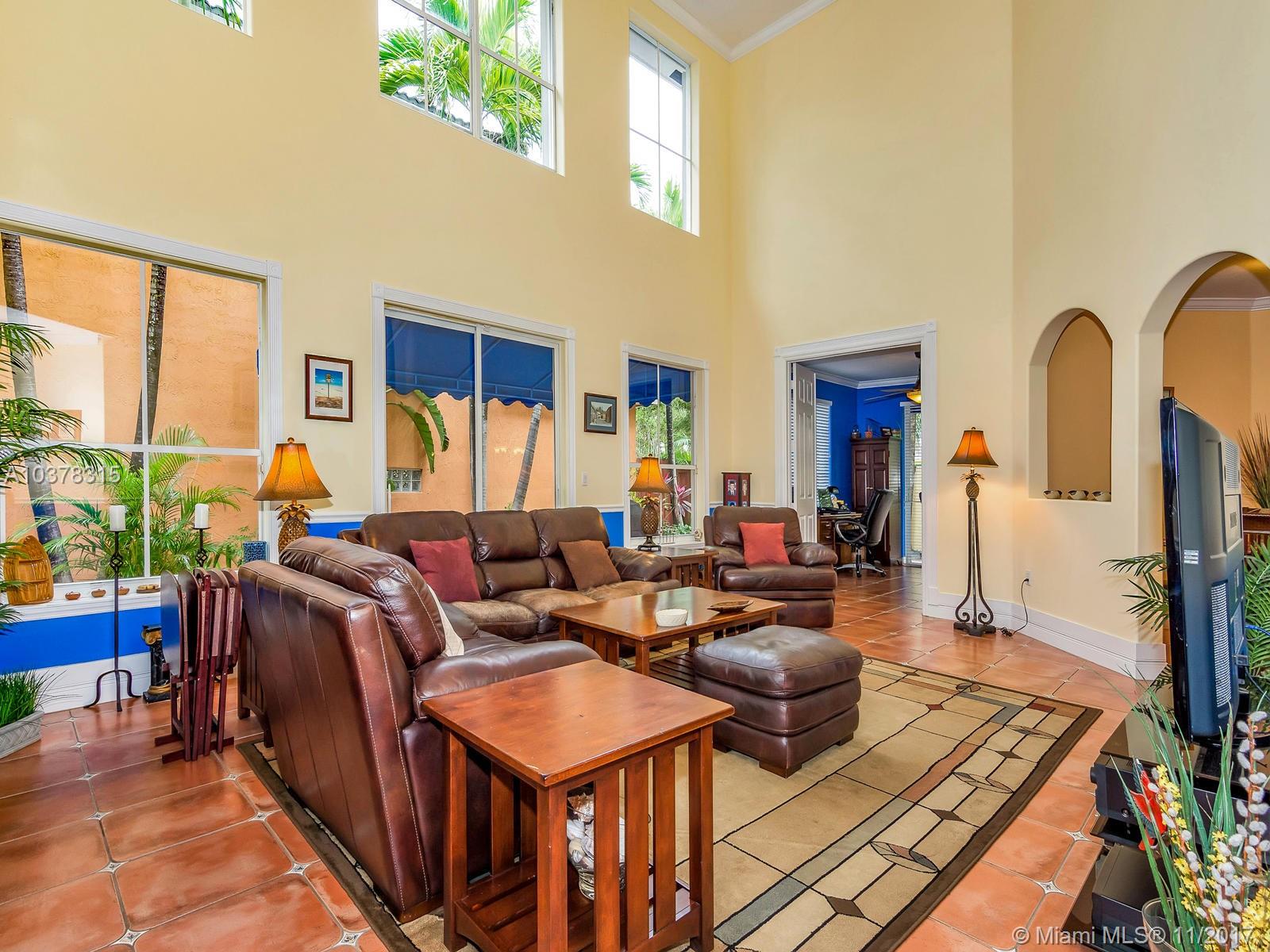 This magnificent home with a two car garage is located in one of the most desirable communities in Doral. This elegant house has 4 bed/3.5 baths with over 2,600 sqft of living area that features a fabulous layout with high ceilings, crown and chair moldings throughout. Spacious living room, formal dining room and a family room which overlooks the open concept kitchen. Top of the line stainless steel appliances and granite counter tops. Huge master suite has a large separate sitting area. MBR bath has dual vanities, stand-up shower with glass doors and a whirlpool tub. Guest bedroom on first floor has private full bath. Well landscaped patio perfect for entertainment. Private community with guarded gate is beautifully landscaped and maintained.