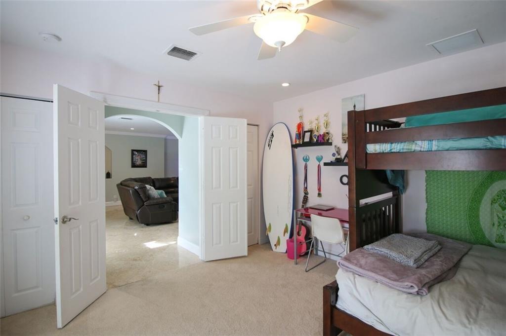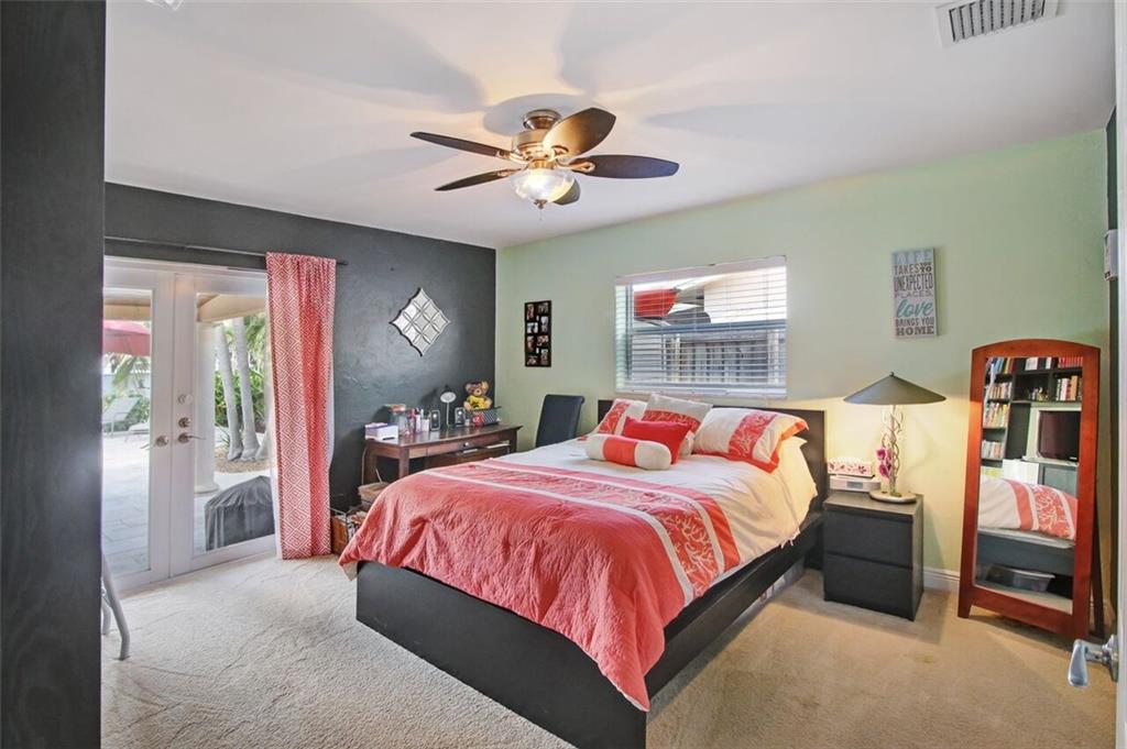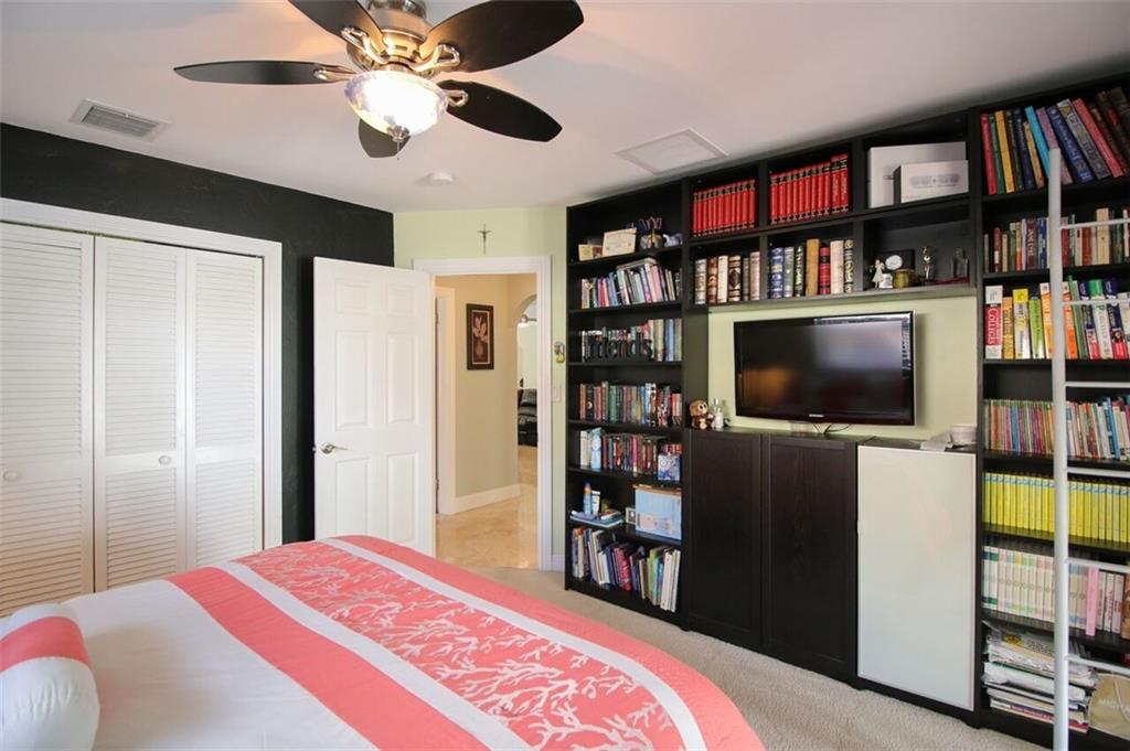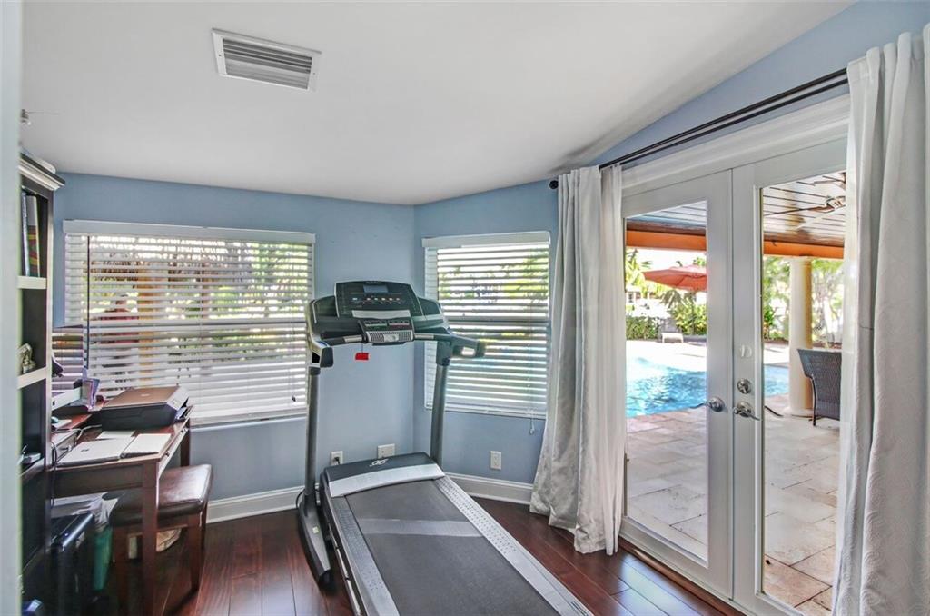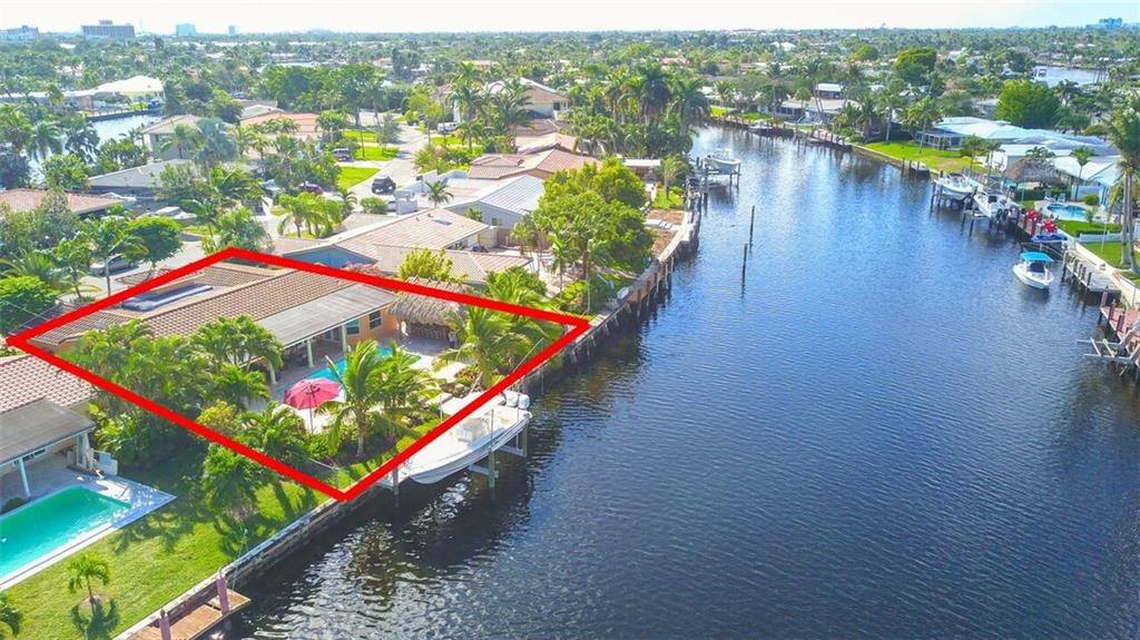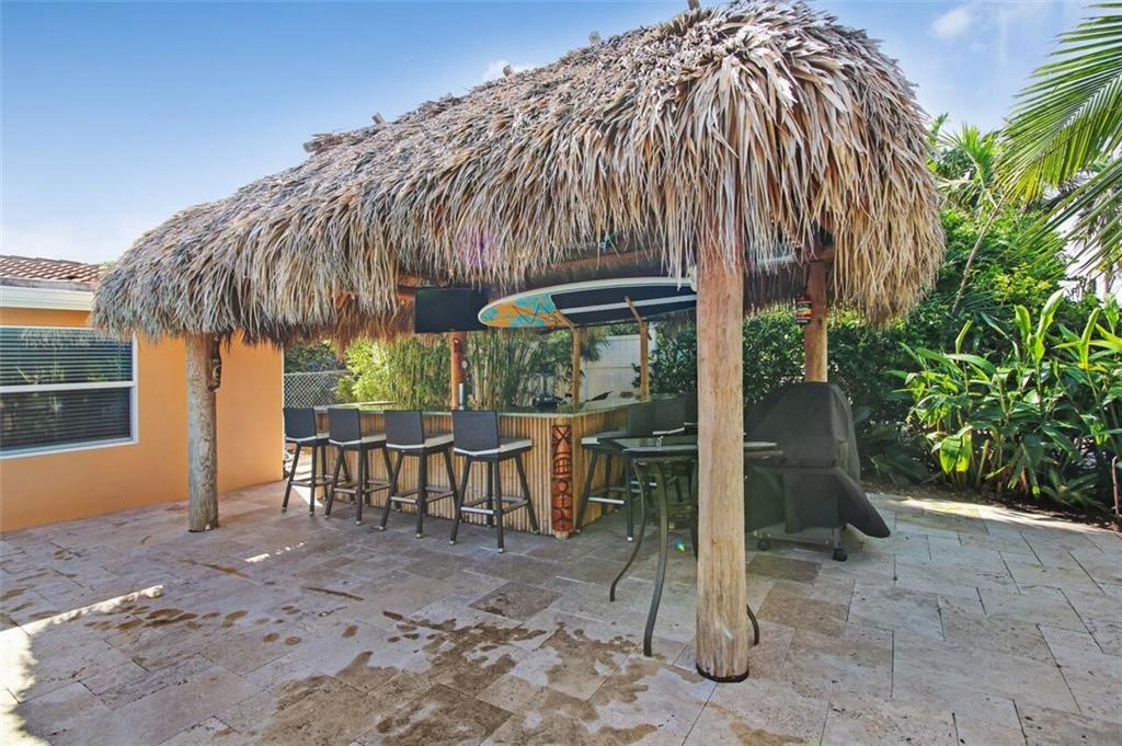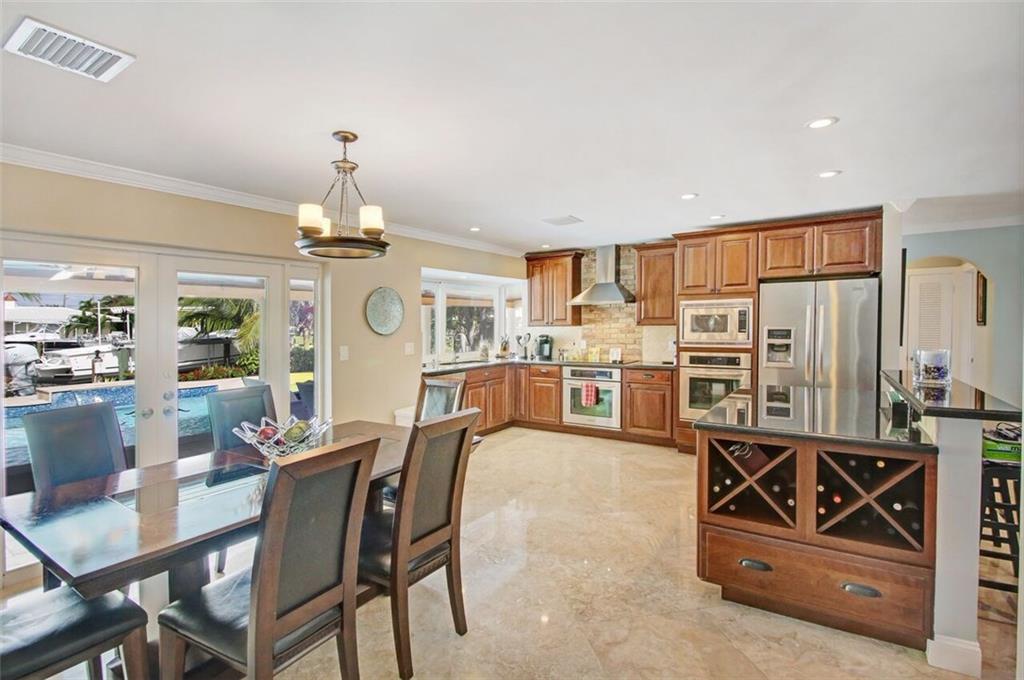 Entertainer's dream house! Stunning, completely upgraded waterfront masterpiece. Property was remodeled 5 years ago. SF added w/permits. Home boasts impact windows & doors,wood & marble flooring,crown molding,bonus office/sitting area off master,open kitchen w/custom cabinetry,granite,s.s. Kitchen Aid appliances,contemporary fixtures & quartz tops in bathrooms & much more! Scenic outdoor area featuring water views of extra wide canal,75' of WF,boat lift,salt pool,tiki bar & french-laid travertine deck.