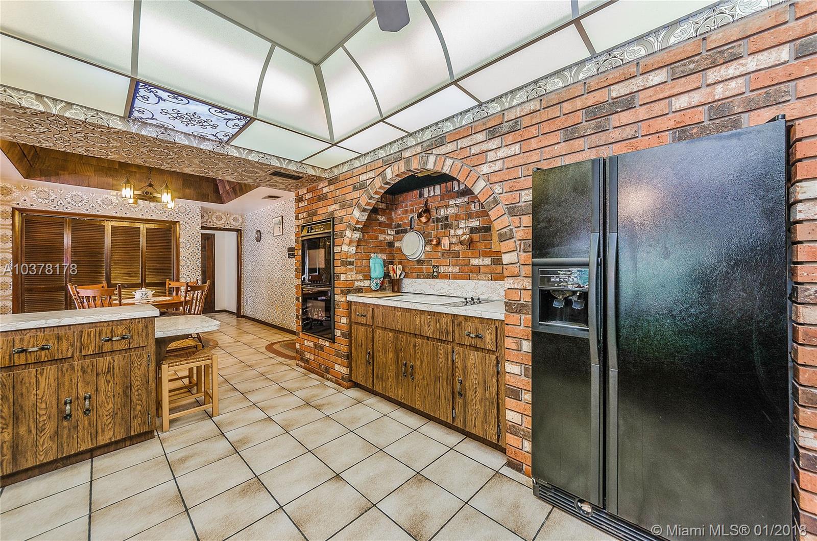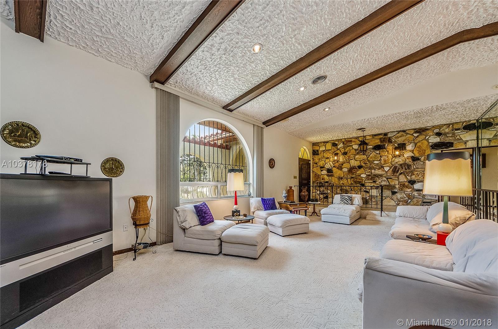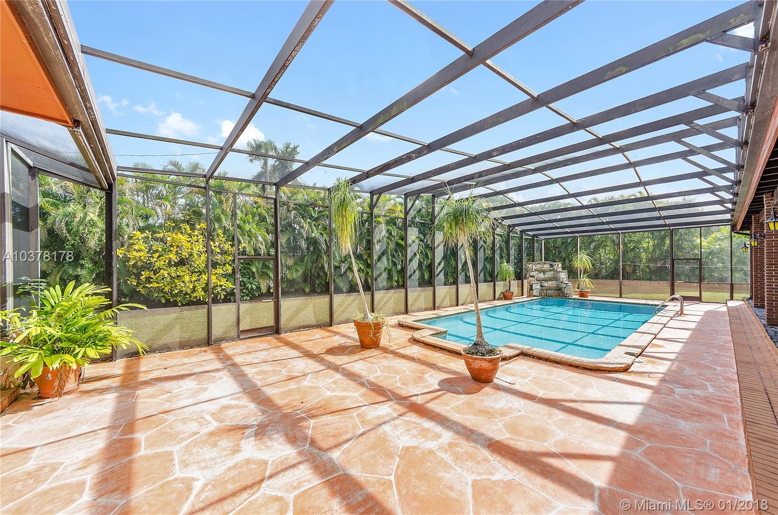 Renowned builder Ken Parker built this home situated on 37,897 SFf lot in North Pinecrest. The stone fireplace is a focal point for the large living/dining room space with vaulted ceilings and large natural light windows. Large living spaces include: 3bed/3baths, 3 car garage, laundry room, eat in kitchen with walk in pantry. Huge covered patio with screened in pool is perfect for entertaining Florida style. Hurricane shutters for sliding glass doors. A real gem waiting to be refreshed! Pinecrest Elementary School.