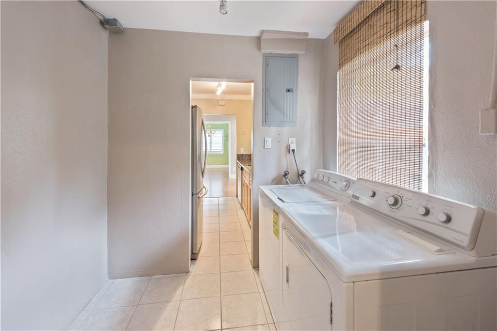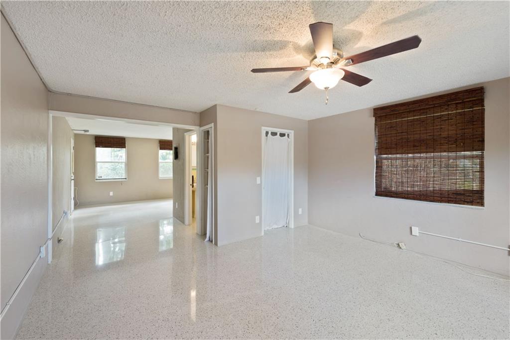 3/2(1 car garage) in Middle River Terrace. Features laminate floors throughout, terrazzo in master suite, newer windows (non impact), original baths, fenced backyard, deck and 10x10 workshop (both need work).