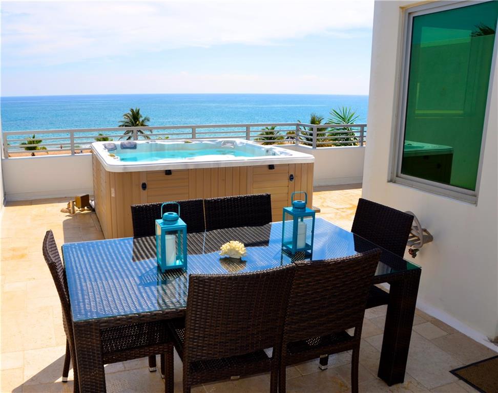 OCEANSIDE LIVING AT ITS FINEST! BREATHTAKING TRI-LEVEL CONTEMPORARY MASTERPIECE FEATURES 3 BED 3.5 BATH, SPACIOUS OPEN FLOOR PLAN, FLOOR TO CEILING WINDOWS (DIRECT OCEAN VIEWS), HIGH CEILINGS, PRVT ELEVATOR, TWO CAR GARAGE + OPEN CHEF STYLE KITCHEN (GAS COOK TOP + ISLAND, STAINLESS APPLIANCES + WALK-IN PANTRY). BREATHTAKING, FOURTH LEVEL, ROOFTOP TERRACE FEATURES JACUZZI SPA + DIRECT, UNOBSTRUCTED, OCEAN VIEWS! COMMUNITY HEATED POOL AREA. THIS IS AN EXCEPTIONAL, RARELY AVAILABLE, BEACH SIDE PROPERTY!