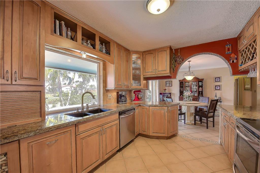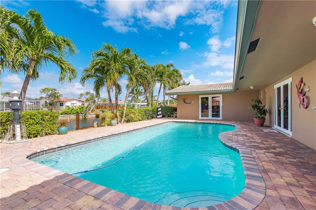 Serious seller wants it sold. Desirable 75’ waterfront home on a quiet street offers 4BR/3BA/2CG and pool. Features include a renovated open kitchen with custom cabinetry, granite, and stainless appliances that opens to cozy family room. Spacious living and dining rooms, interior laundry, two bedrooms are ensuite with an additional guest/cabana bath. Enjoy beautiful water, pool and garden views from impact windows and doors. Large paver pool area with dock, perfect for entertaining family and friends.