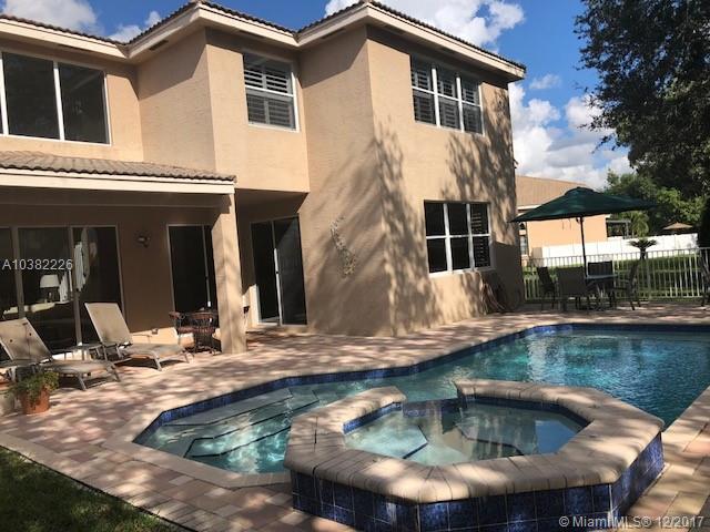 Gorgeous tropical paradise 5 BR, 3 Bath, 3 Car Garage Pool home in manned gated resort-level Silver Shores Community. Upgraded/Updated kitchens and baths. Three sets of sliding glass doors open to covered patio, fenced yard, heated pool. Newer dual zone A/Cs, hot water heater and alarm system. Low HOA fee includes community pool and club house, fitness center, tennis and basketball courts, miniature golf, gazebo and more. BR and full bath downstairs, huge master suite and remaining bedrooms upstairs. Top SW Broward County Schools. Walk/bike to shopping, dining and club house amenities. Close to I-75 for easy commute in every direction.