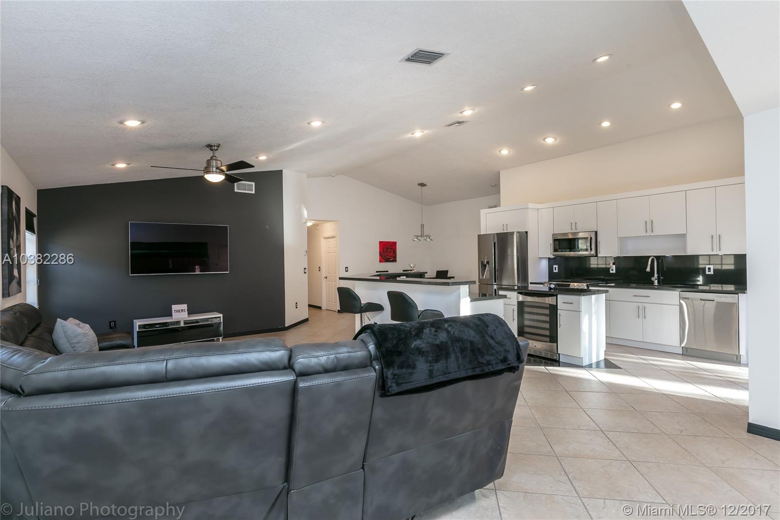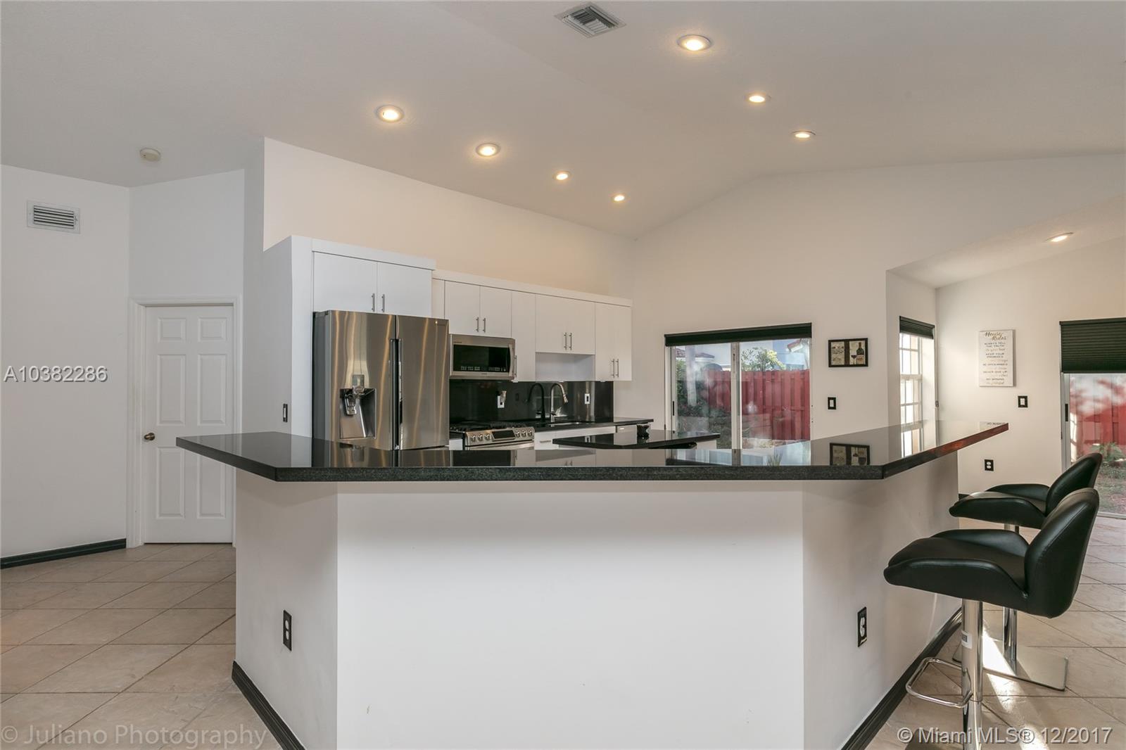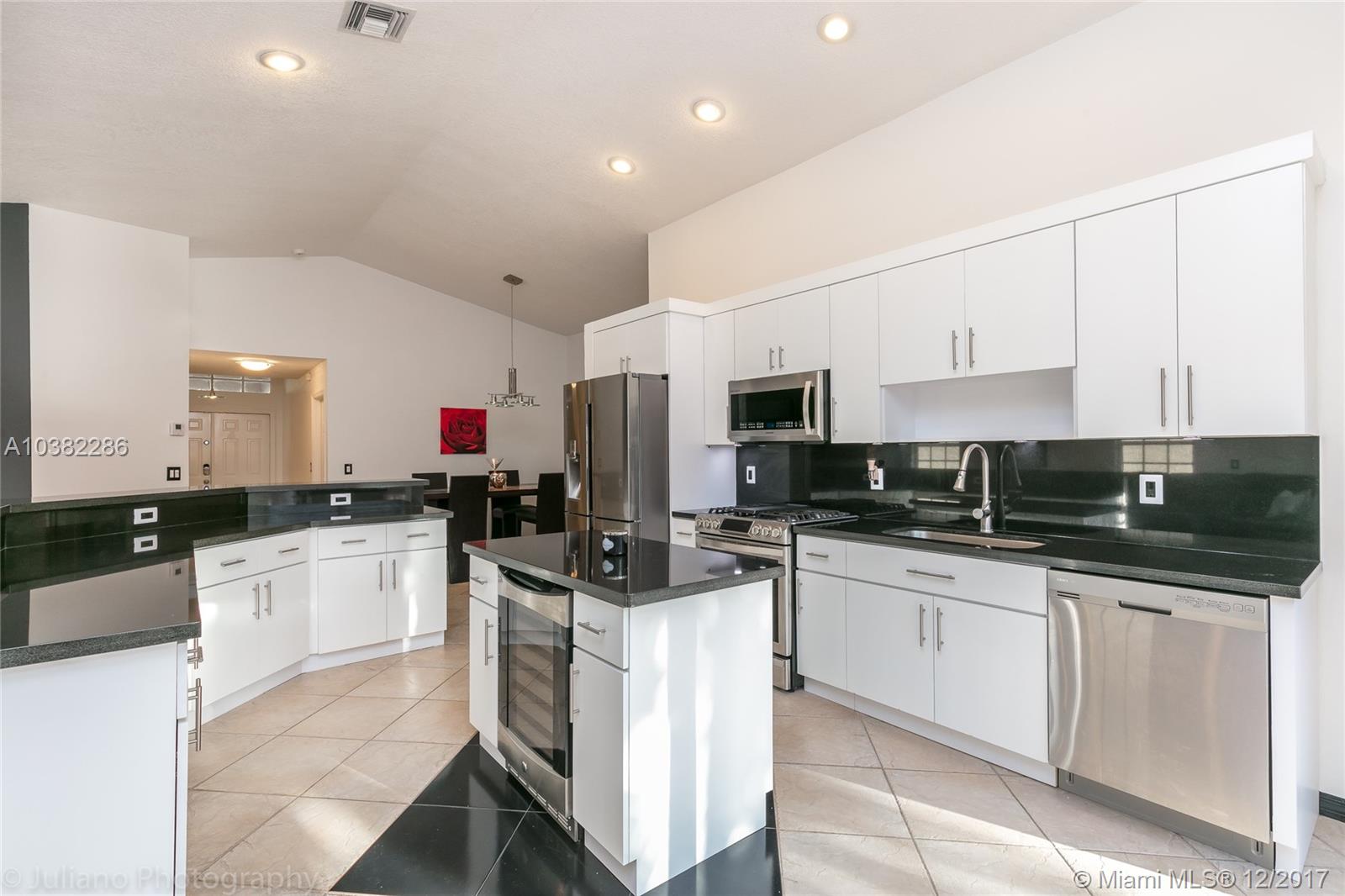 Impeccable, Bright and Spacious Upgraded 3 Bedrooms, 2 Bathrooms Home in The Gables at Weston/Bonaventure. Open Split Floor Plan w/ Vaulted Ceilings. Beautifully Remodeled Kitchen w/Granite Counter Tops, Stainless Steel Appliances, Gas Stove, Wine Cooler. Tile/Wood-Laminate floors throughout. Ample Master Suite with Large Walk-In Custom Made Closet. Remodeled Master Bathroom w/ Separate Shower and Tub. Pavered Fenced Patio. Garage Features Custom Storage. Excellent School District. A must See!!