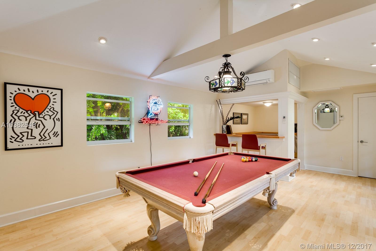 Dive in! This one-story N. Pinecrest home, on a 50,000’ lot, offers the warmth of a home with the amenities of a resort. Lighted N/S tennis court with a chickee hut sits astride a separate guesthouse as well as a third house AKA “the clubhouse.” Add the pool & BBQ & you have a home that will be a memory maker for family & friends. Rainy outside? Come on in and enjoy a movie in the home theatre. Lushly landscaped, there is a covered carport as well as a 2 car garage. Pinecrest Elementary. A Very Special Home.