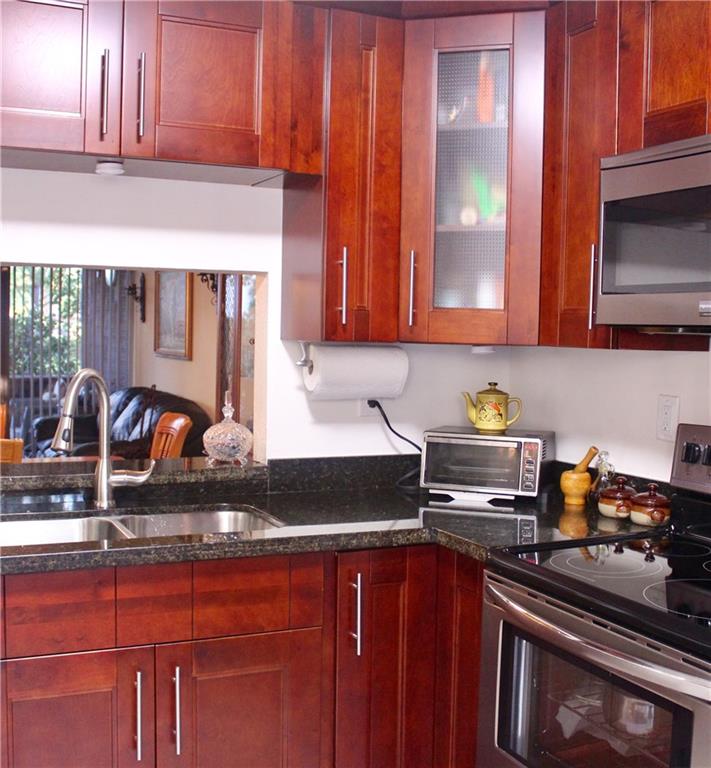 TOTALLY RENOVATED! Lovely corner unit townhome, 2 bedrooms, 1.5 baths in gated pet friendly community. New contemporary kitchen w/ stainless steel appliances & tile throughout main areas of this spacious home. LARGE outdoor enclosed patio feels like an extension of your home. Laminate wood upstairs w/ 2 bedrooms & 1 bathroom up and 1/2 bath downstairs. Low HOA of $331 monthly inc. water, roof, bldg. exterior & bldg. insurance, gated entry, pool, laundry facility & tennis. No FHA. No min. req. down by HOA or credit score. Rentals OK after 1 year. 2 parking spaces right in front of home. Pets OK up to 40 lbs.