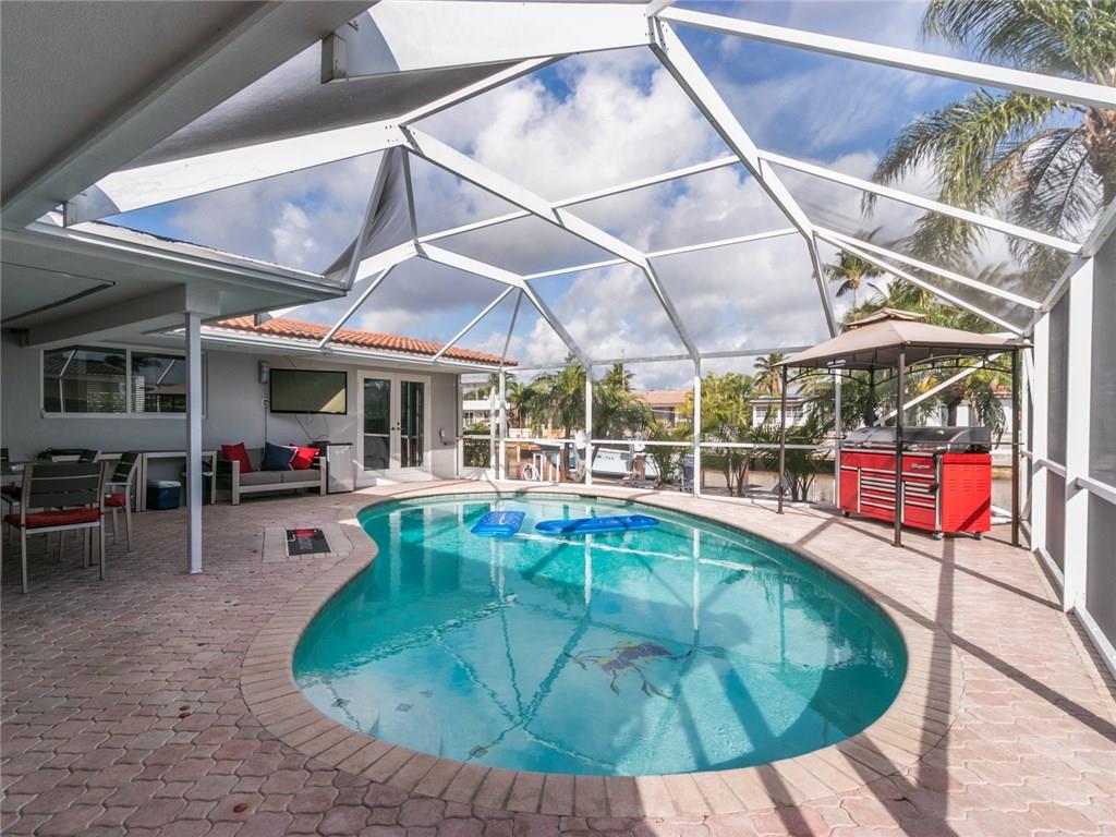 Newer construction ***Upgraded home ***OCEAN ACCES***Vaulted ceilings-Open concept split floor plan. 2,252 sf TOTAL area .4 bed /2 bath. 70' WF ,20 minutes ride to Open Ocean. This Tropical paradise has a Screened heated pool, Impact windows and doors, newer roof, batter Piling seawall and 30x80 dock w/boat lift. Laundry room , oversize car garage , all fenced, two higher efficient AC, Top of the line white gloss Kitchen, convention/induction stove, 2 wine cellars ,porcelain title and more!!!! no HOA