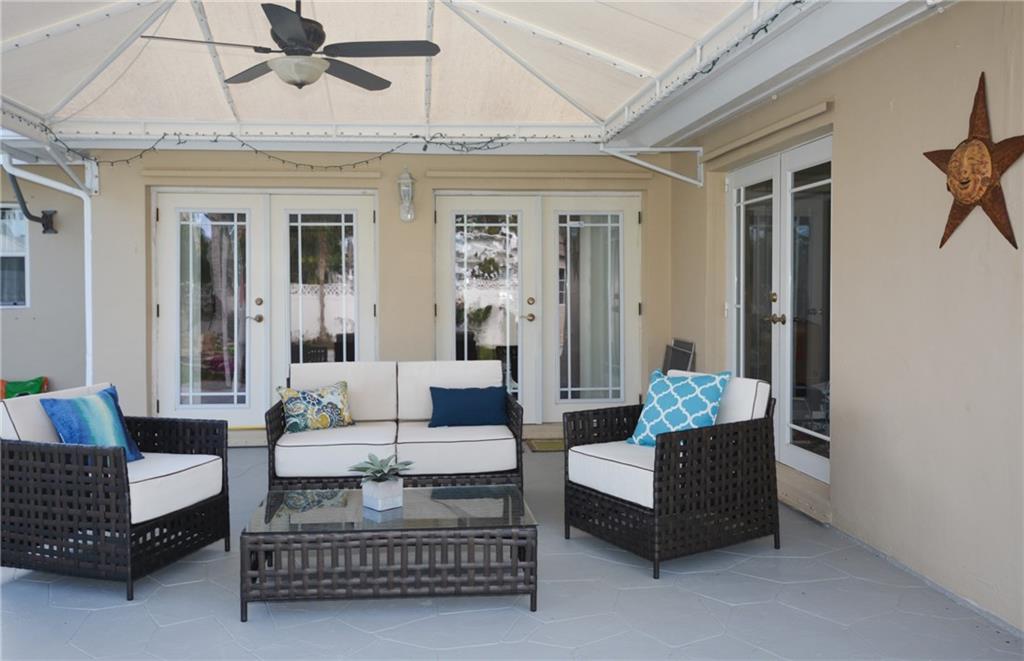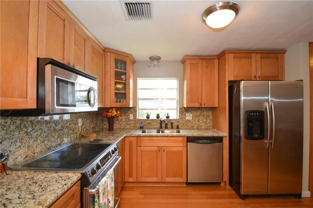 YOU WILL TRULY FEEL AT HOME AS SOON AS YOU WALK INTO THIS GEM. OPEN FEEL WITH THE REMODELED KITCHEN AS THE CENTER OF THE HOME FEATURING STAINLESS STEEL APPLIANCES, PLENTY OF STORAGE, WINE COOLER AND A BAR. NICE SIZE LIVING AREA WITH FRENCH DOORS THAT INVITES YOU TO THE BEAUTIFUL FENCED IN YARD. BACKYARD HAS A TROPICAL FEEL WITH A LOVELY PATIO/SHADED SITTING AREA. BEDROOMS ARE NICE SIZE AND 2 REMODELED BATHROOMS. GORGEOUS BAMBOO FLOORING. LARGE SHED FOR STORAGE. GREAT FLORIDA LIVING!