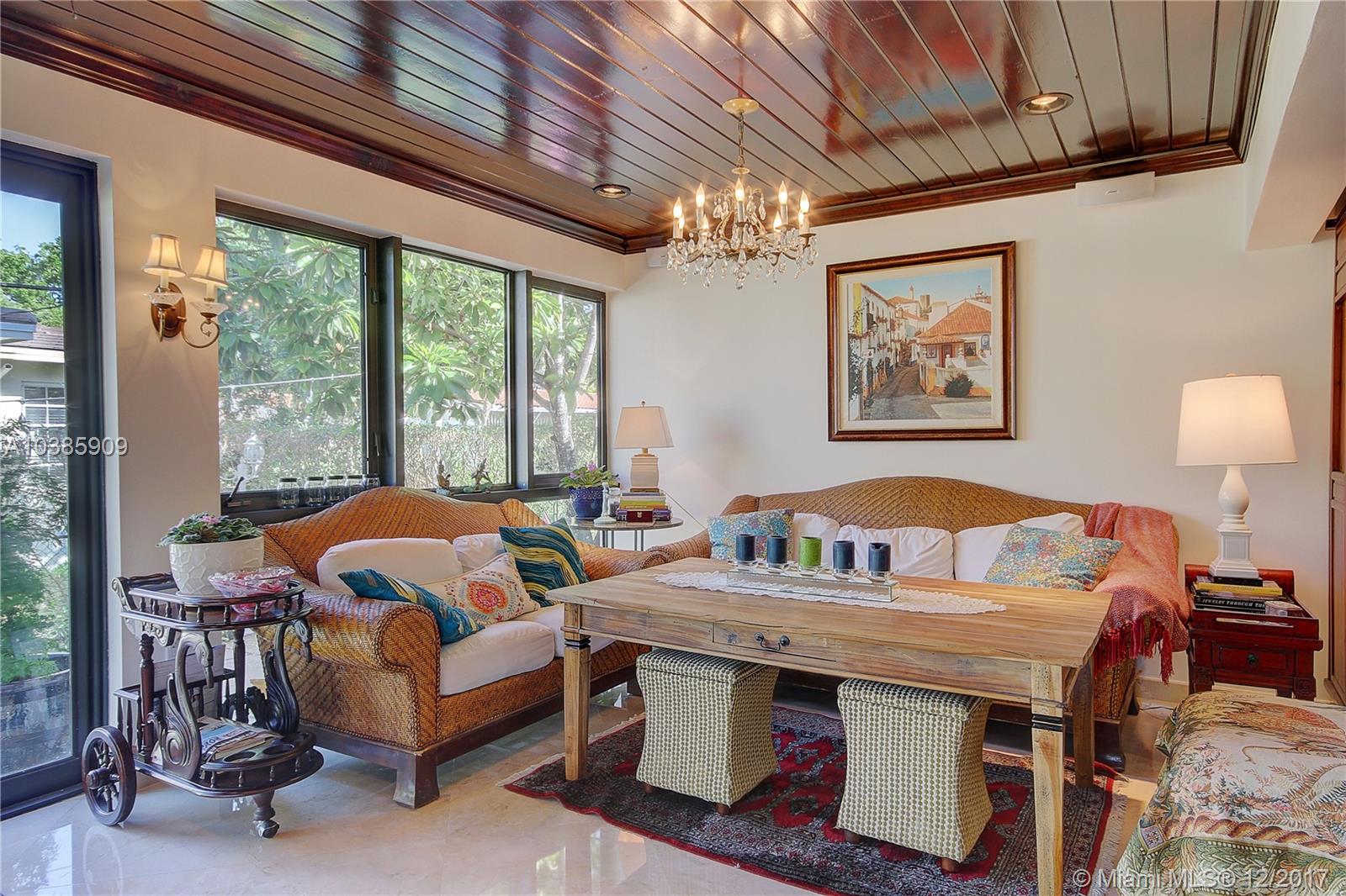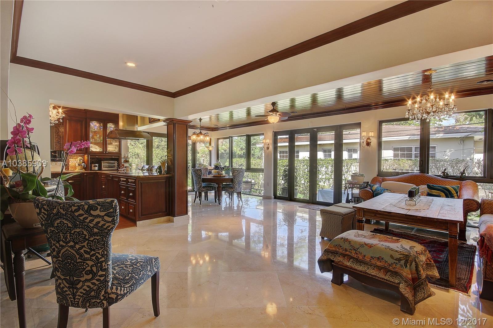 Elegantly updated this home is situated on a corner lot located on a tree-lined street in the prestigious Coral Gables Riviera section. This home features impact windows, updated eat-in kitchen with top of the line stainless steel appliances, updated bathrooms, beautiful white marble flooring throughout and wood flooring in bedrooms. Spacious floor plan with formal dining, formal living room with fireplace and has a newer roof (2006-2007) and several fruit trees in this spacious backyard.