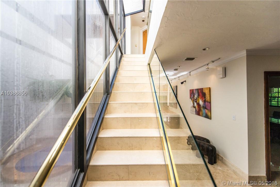 A unique Coral Gables residence custom built in 1983 by Architect Dov Liven. Designed w/gallery walls, 1st flr living area surrounds a glass atrium complete with a private spa for relaxation. Surrounded by Formal Dining, living, kitchen, family rm & guest bdrm w/en-suite bath. 2nd flr Master suite/bath with open pyramid wood beam ceiling. Balcony overlooks pool/patio. 3 bdrms, lg bath. Separate laundry & 2 car gar . Completes this beautiful home.