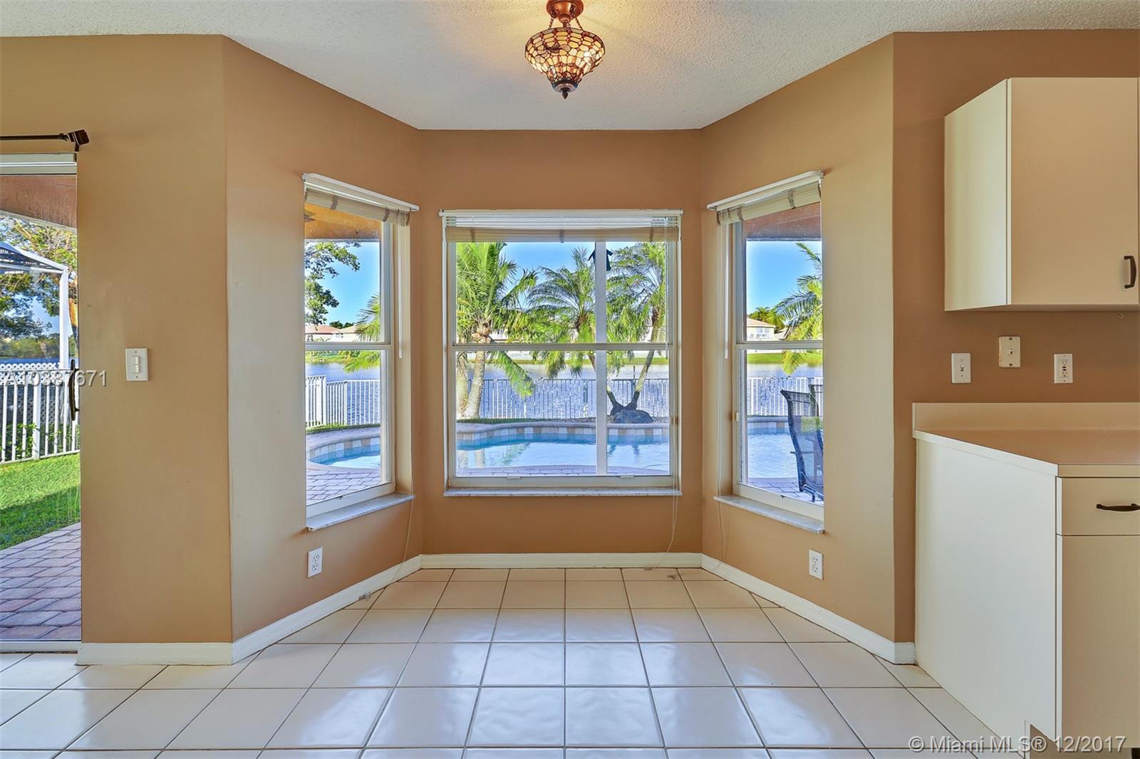 Amazing lake views from this pool home! Spacious , open kitchen concept with breakfast area and a bay window all leading to a large Family room with views of the water. Large Master Bedroom upstairs with a huge walk in closet, extra den overlooking the 1st floor, all laminate floors in bedrooms, pool area features a covered patio, brick pavers, heated pool with an elevated Jacuzzi, fenced yard all overlooking gorgeous long lake views. Property also have a water filtration system and hurricane shutters. This is a great home in a great community!
