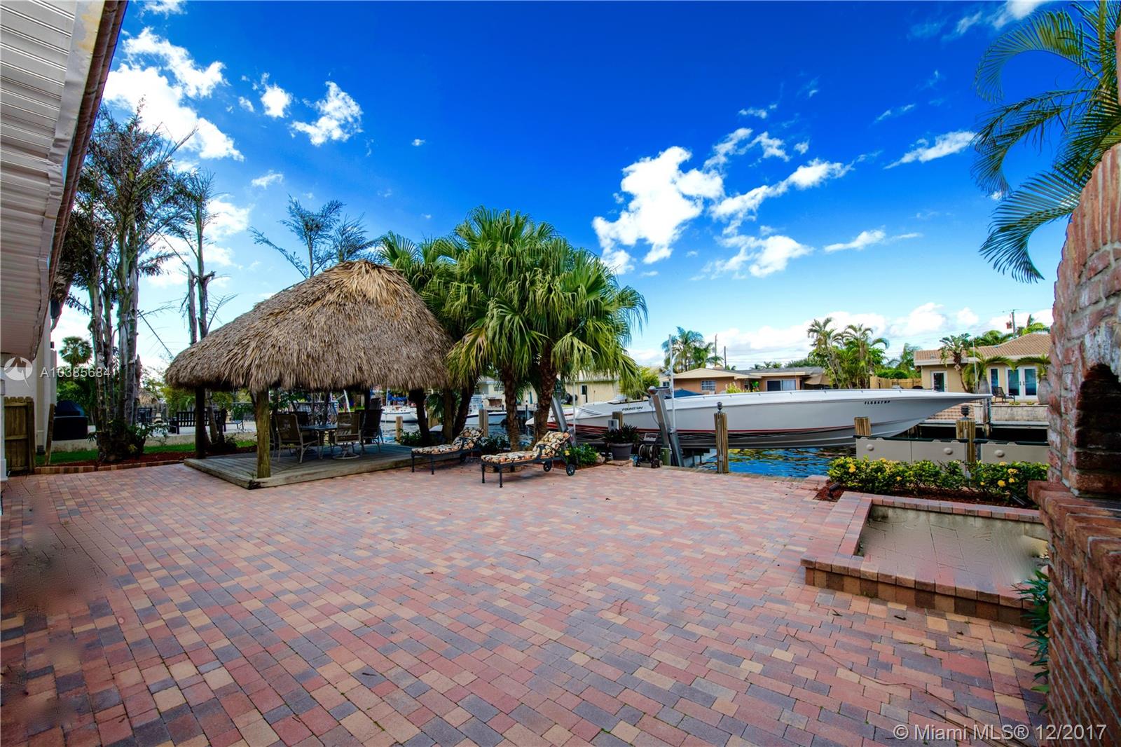 Beautiful Key West Style Home on Deep Water in Exclusive Pompano Isles! This charming residence features, Architectural Style vaulted ceilings with Natural Wood Beams and an abundance of light! The Gourmet kitchen is superbly equipped, with an open style floor plan, Granite counter-tops, Rich Solid Wood Cabinetry, a Double Convection Oven and Sub-zero refrigeration too! Amazing newer Tiki Hut overlooking the waterway is perfect for entertaining.This is a one of a kind waterfront home you will want to see. One sided street for added privacy! Truly a Boaters Paradise! The Dock is fully equipped w/elec.& water. There is an electric Boat lift too! This Charming Oasis is a value added Waterfront Property that is priced right and surely not to last!