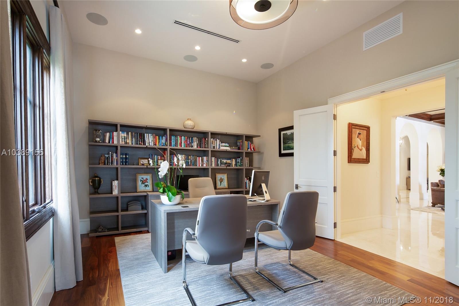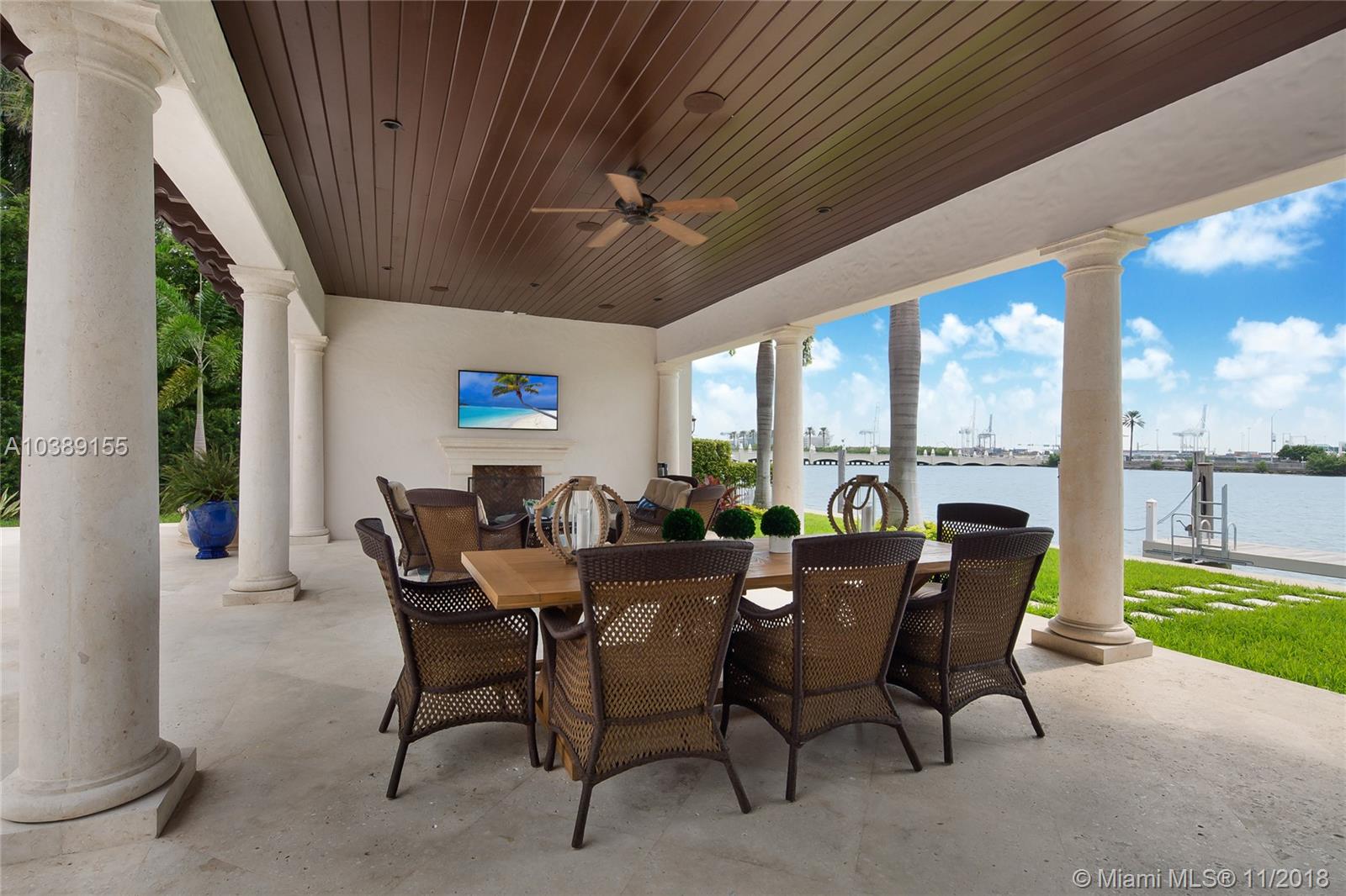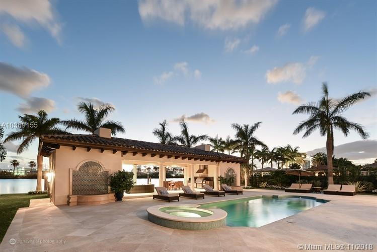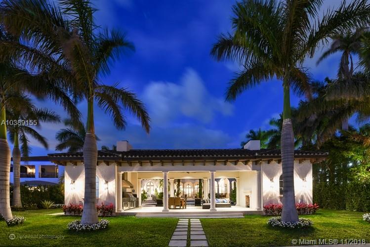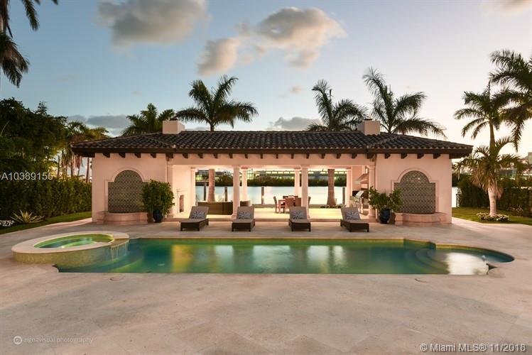 Stunning bayfront masterpiece nestled on a 30,000 sf lot in the exclusive & gated Palm Island. With 12,000 sf under AC this home is impeccably designed for entertaining inside & out w breathtaking views of the Miami Skyline. 7 bedrooms, 7 / 3 baths plus detached guesthouse w bed, bath, full kitchen & living room. Chef’s kitchen w top of the line appliances, breakfast area over looking terrace, pool and bay. Wood beamed ceilings, grand hallways & marble floors throughout. Manicured lawns, gate and 3 car garage complete this magnificent estate.