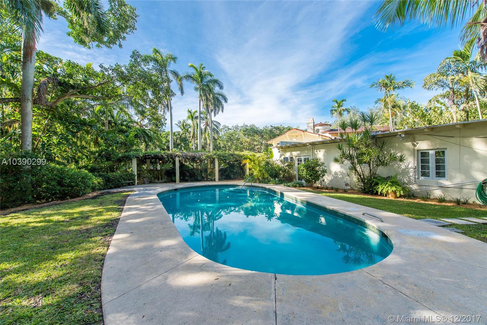 Elegant & rarely available DeGarmo designed estate on Utopia Court, a coveted South Grove cul-de-sac. The home is set within a lush tropical hammock and canopied by mature oaks & exotic palms. (17,700 SF of land / 3 contiguous lots). Classic architectural details (circa 1937) include dramatic vaulted wood beamed ceilings, original stone fireplace & 5 foot high sculptured wood panels that encircle the formal dining room. Grand formal living room with unique interior balcony, originally used as a library. French doors throughout overlook the stunning grounds with vine covered terraces, brick courtyard and tranquil pool. Close to the Grove village center’s galleries, boutiques, cafes and bayfront parks & marinas. Minutes to downtown, MIA, Coral Gables, Key Biscayne and the Beaches.