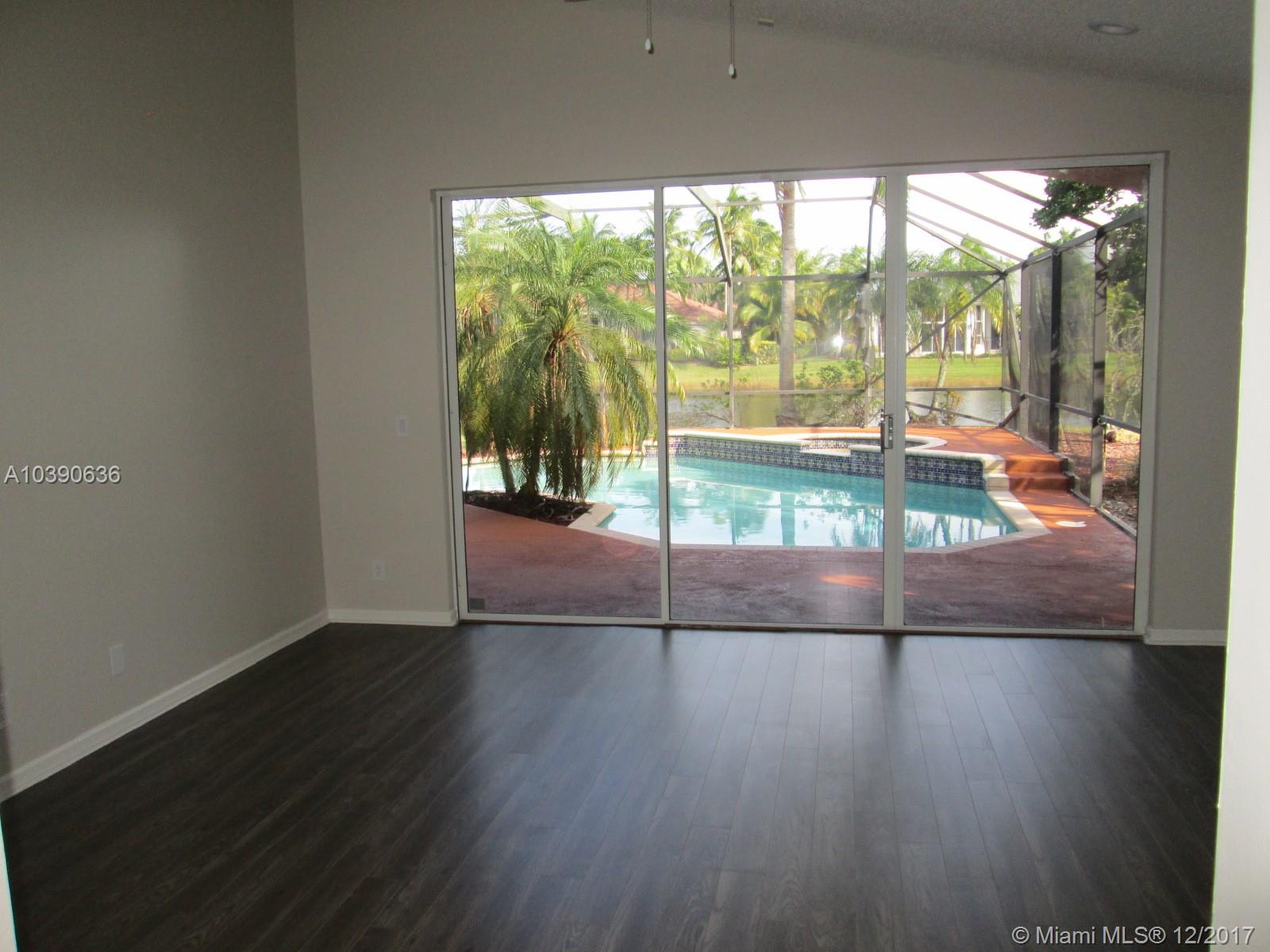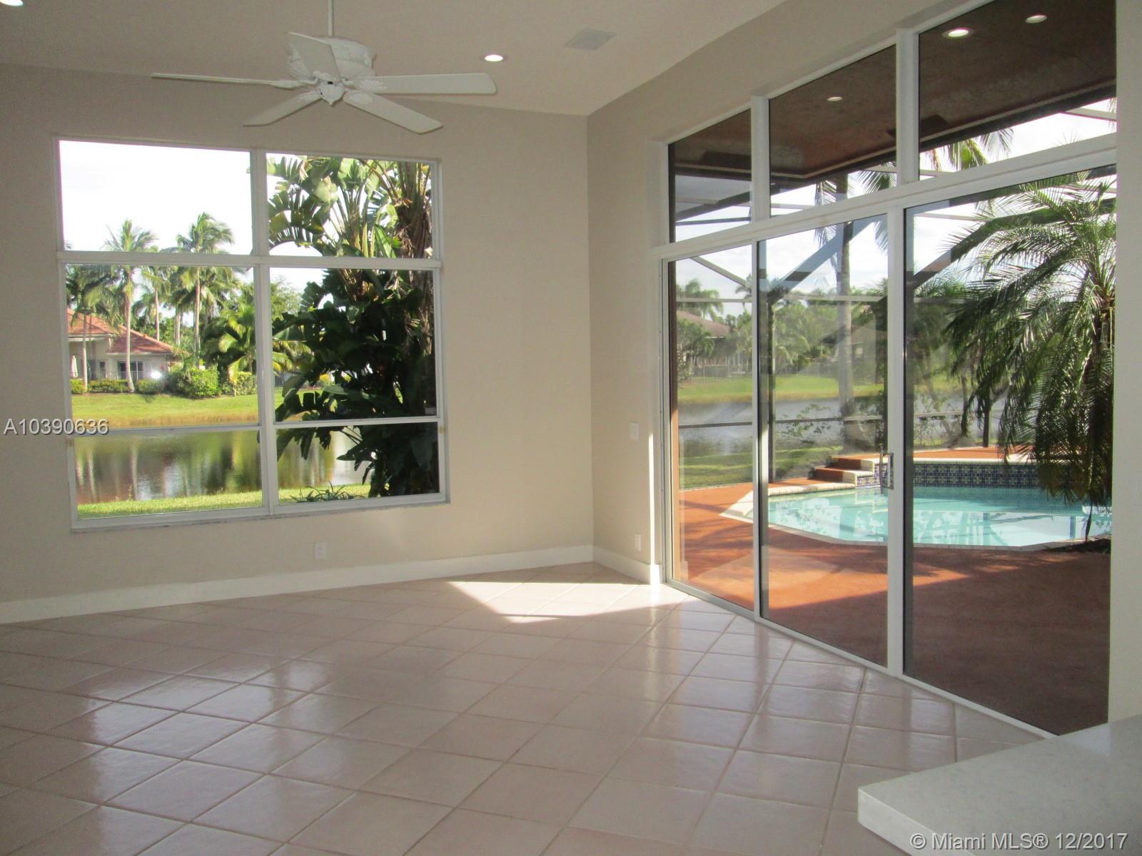 Great lake front and pool property in Weston Hills Country Club gated community with golf courses. Subject has 4 bedrooms plus a den that can be used as a 5th bedroom, 3.5 bathrooms ***Just freshly painted inside, new master bathroom, kitchen cabinets, counter and appliances, new toilets, vanity and mirrors in the full bathrooms, new LED recess light fixtures and much more! Ready to move-in.**Easy to show, Vacant**