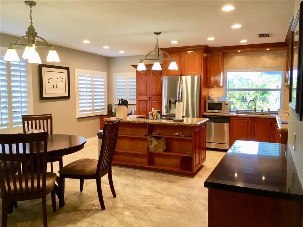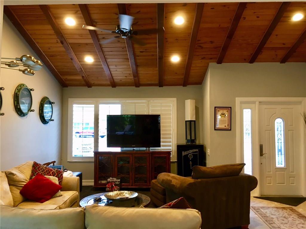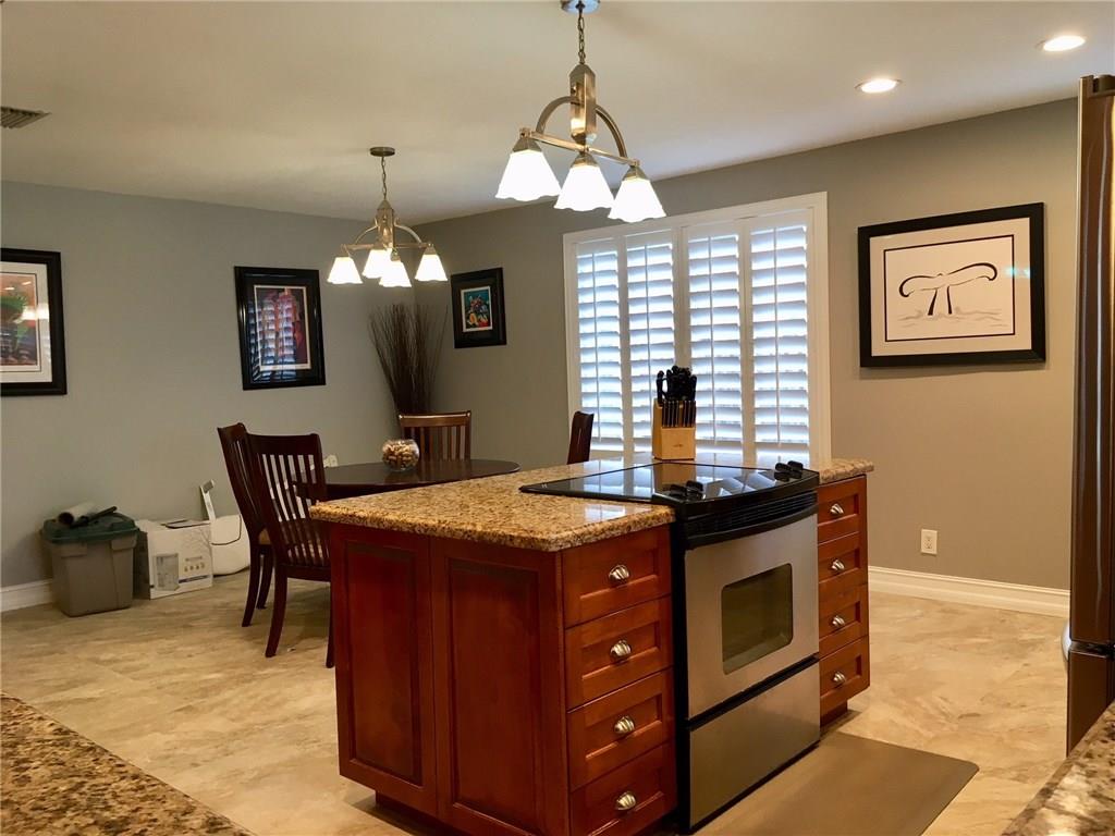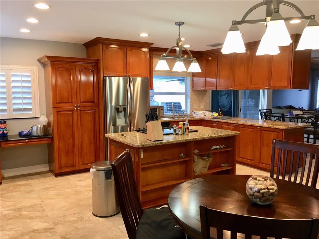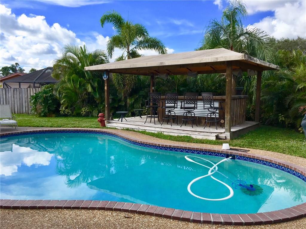 Completely updated pool home. No HOA. Circular driveway plus boat/RV parking (30ft). Led lighting, mini bar, plantation shutters, cooking island, stainless appliances, hurricane windows/accordion shutters/garage door, salt water pool, shed, pass thru window from kitchen to covered patio, granite counter tops, newer roof, eat in kitchen, alarm and cameras, new water heater, screened garage, tiki bar overlooking the pool, custom canopy covered parking, culdesac road, mini-split AC/master, vaulted ceilings