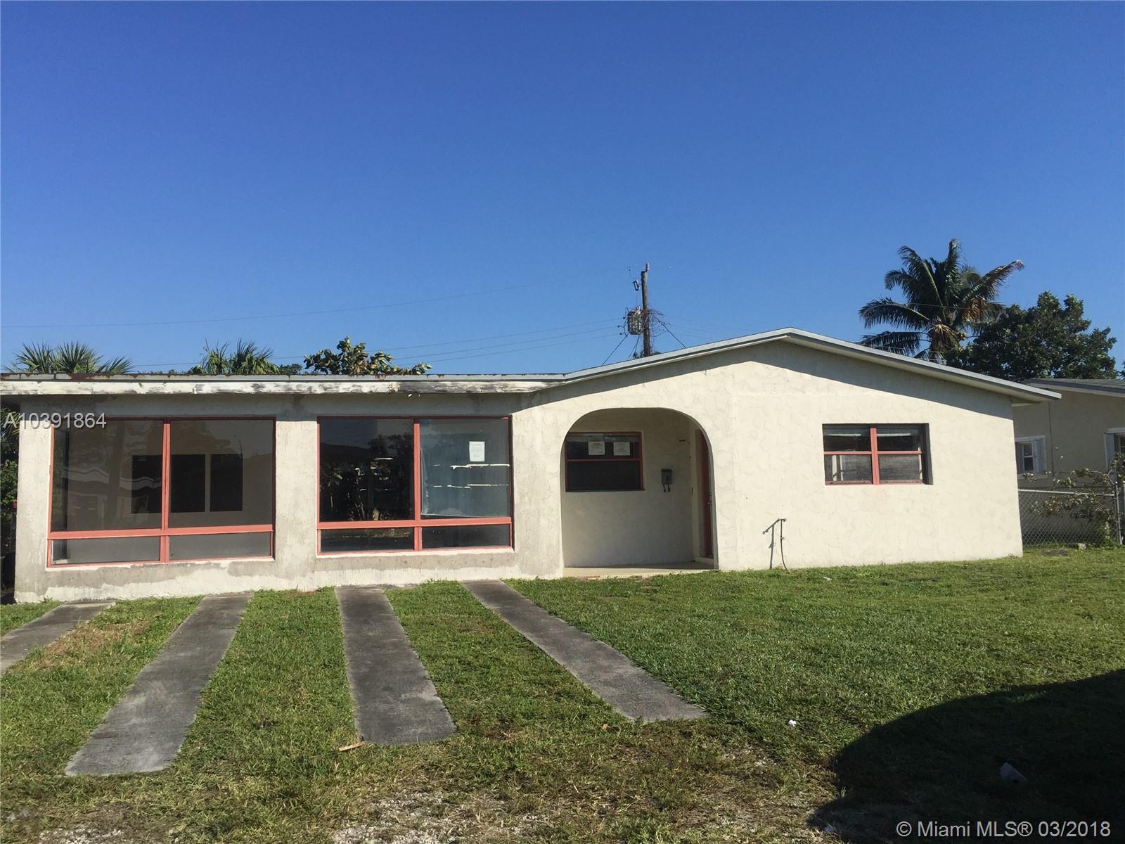AS IS Contract.Nice 3 bedroom & 2 bathroom, single family home, has 1 complete new bathroom, wide bedrooms and separate laundry room, No AC unit, great pool, patio, large backyard, fenced! This 3 bedroom home features spacious floor plan, tiled & carpet floors inside, best price in the area, Great investment, Needs TLC. Located in the heart of Broward County close to highways and shopping mall.Equal Housing Opportunity.