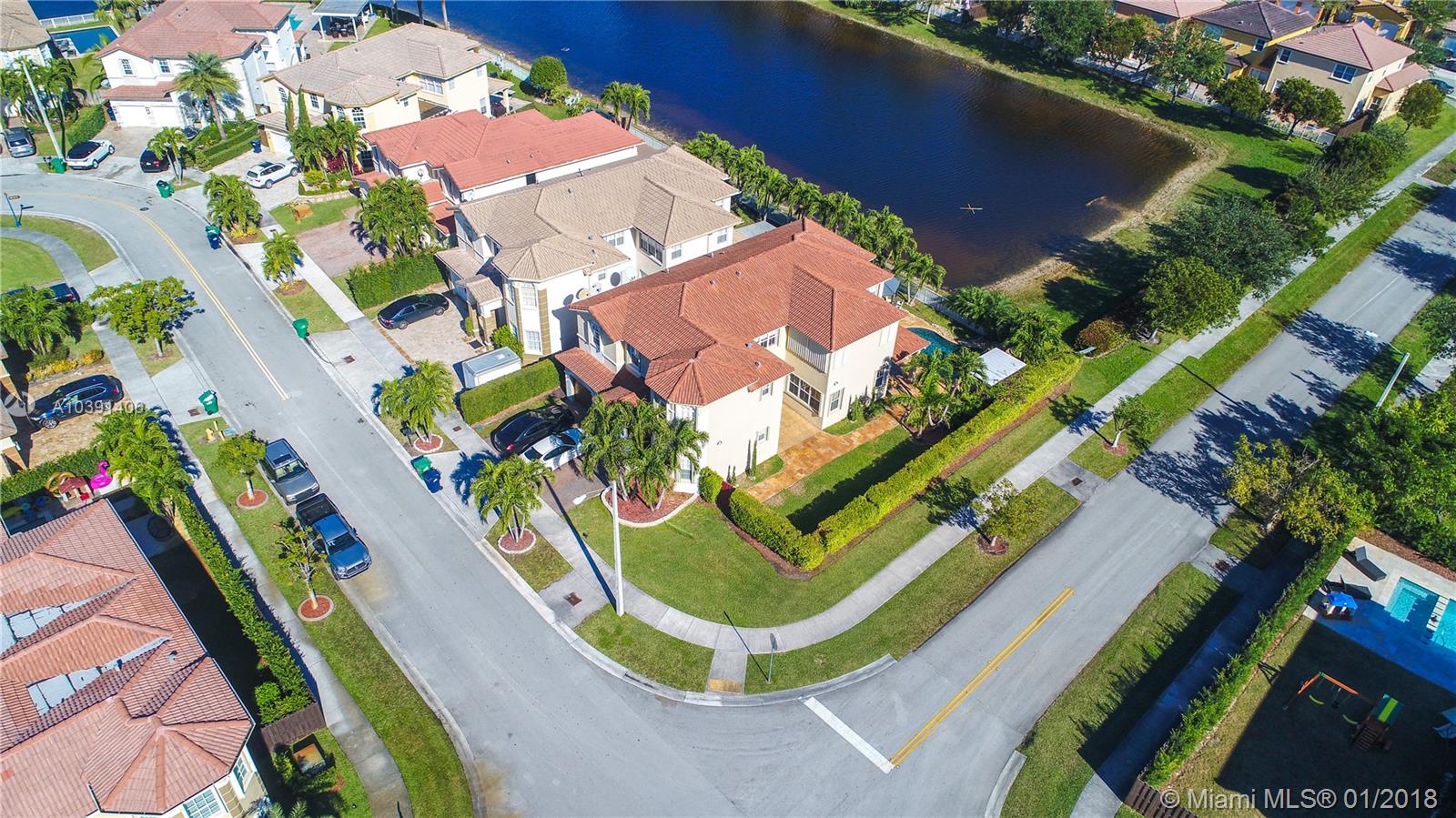Magnificent two-story home in prime location at prestigious Islands at Doral. Corner lot overlooking the lake, lush landscaping and amazing swimming pool with entertainment area. This home is tastefully and completely upgraded with high quality materials. Accordion shutters in all windows, high ceilings. The house is located in front of a park, lots of green space and very quiet neighborhood. You have to see it to believe it!!! It's one of the best homes in Doral.