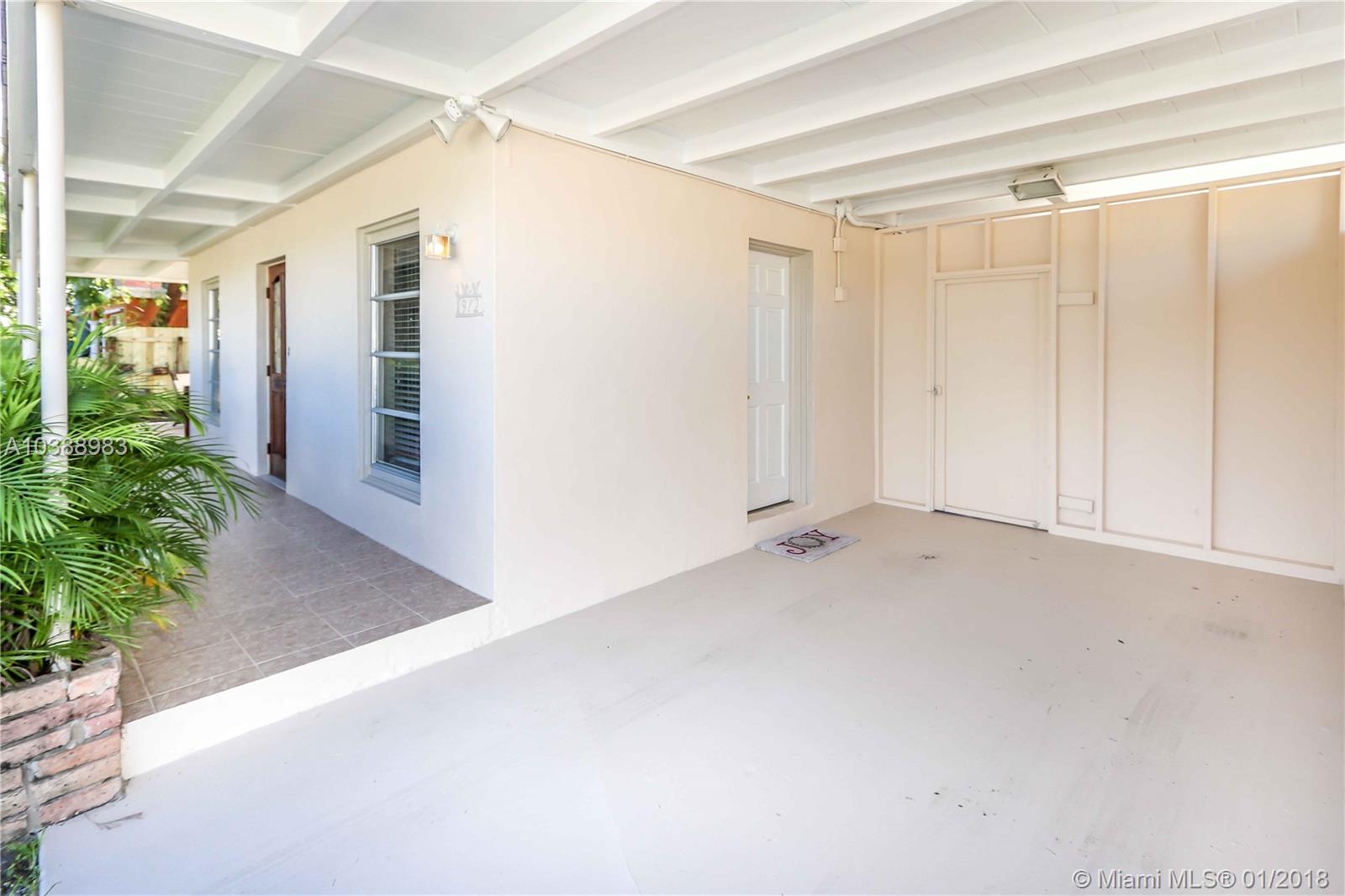 Lovely home east of US 1 in Hollywood Lakes area. 3bd/2bth home features covered wrap around front porch. Great for entertaining! Vaulted Ceiling in 2 bdrs w/ exposed wood beams, master suite has open shower w/ bidet. Italian style bath w/ hand blown glass kohler sink faucet. Spacious Bright house w/ a lot of windows/full of natural light includes formal dining, working fireplace, tiled kitchen floor w/ white cabinets double sink & newer appliances. Open landscaping/large fenced backyard w/ mango, avocado, lemon, & coconut palm trees w/space for a pool. Covered Carport w/kitchen access, newer outdoor lighting/sprinkler system. Newer roof has 4inches of insulation & Compressor A/C(2015). Short distance to beach, tennis/golf course, minutes from FLL/Int airport, easy access to 95/FL Turnpike
