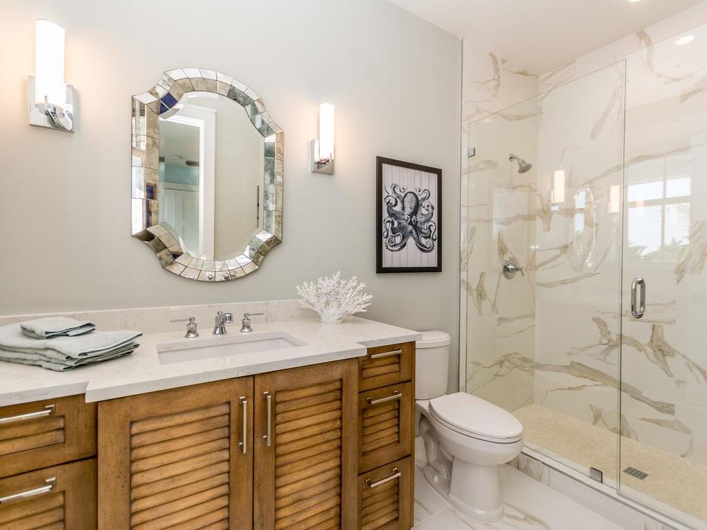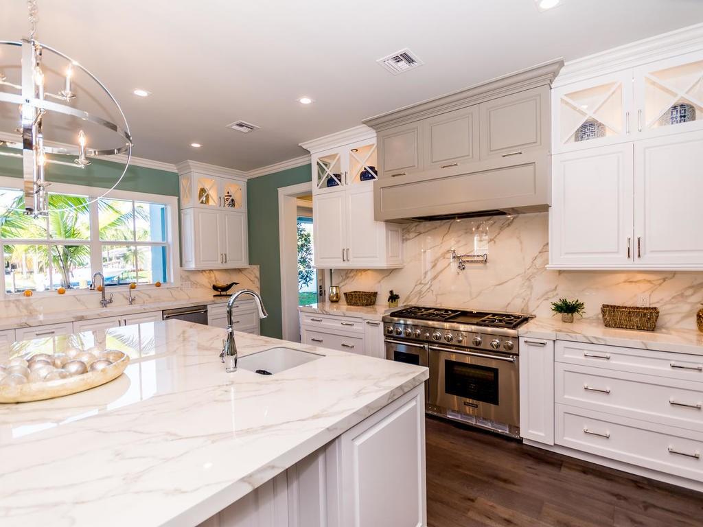 The Island at Harbor Village. 2017 Stunning Palm Beach Coastal elegant home new home with builder warranty. This five-bedroom, four-bathroom waterfront residence offers the attention to detail and sophisticated luxury you have been waiting for. Classic mill-work, French Oak flooring, exquisite curated Chateau limestone, refined, yet one of a kind, durable, Neolith Calacutta Gold book matched stain-proof surfaces. 82 feet deep-water, 15 minutes to ocean