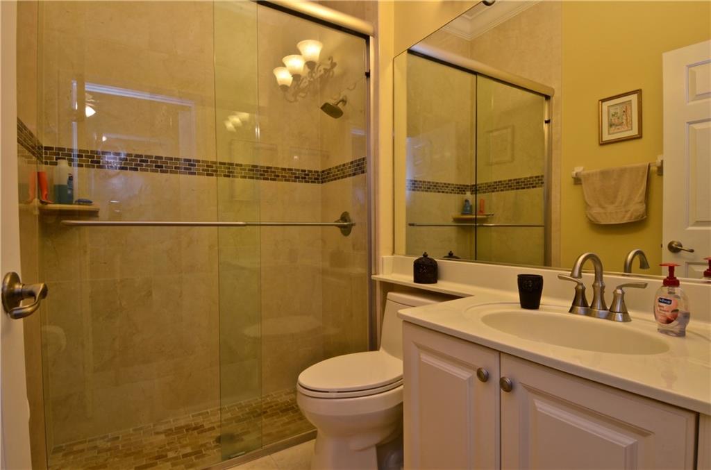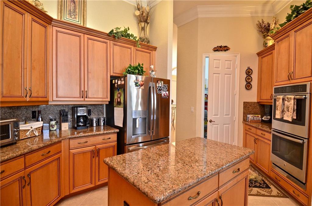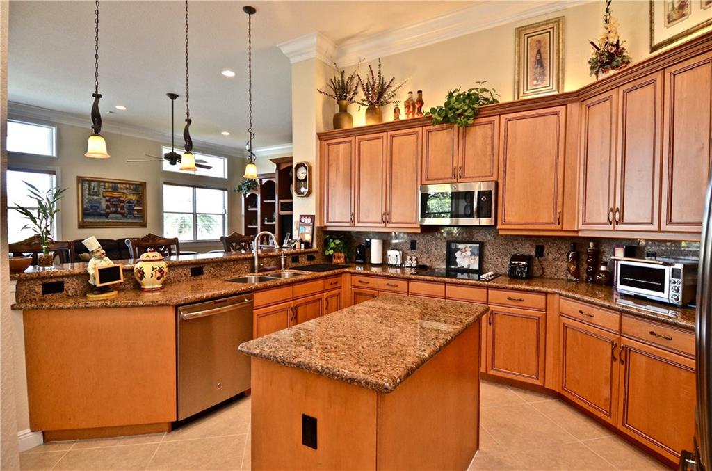 This is the Residence 3 model in the guard gated community of Riverstone - The home is immaculate! - many upgrades which include all new GE Profile stainless steel appliances in April 2017 - Refrigerator/double wall ovens/microwave/dishwasher. Bathrooms have also been updated, including new Kohler and frameless shower doors. - The home sits on a lushly landscaped lakefront lot. 40' pool with stone waterfall. Storm ready accordion shutters, french doors, crown molding and more.