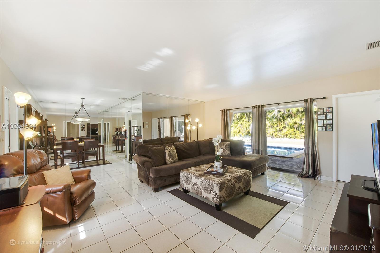 Enjoy Pinecrest living with this pool home boasting an expansive lot in highly desirable school district. Set within walking distance to Palmetto Elementary and Middle School, this home features a two-car garage, updated bathrooms, newer A/C, spacious master bedroom with pool view/access, walk-in closet and convenient cabana bath. Living room offers pool view and access to covered terrace for entertaining, adjacent to cozy kitchen featuring stainless steel appliances and sliding glass doors completely opening up to pool terrace, ideal for year-round indoor/outdoor gatherings. Ample lot size offers opportunity to expand and room to park a boat/trailer.