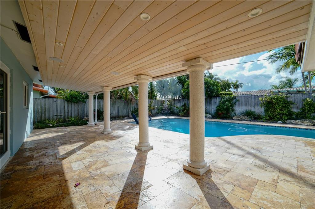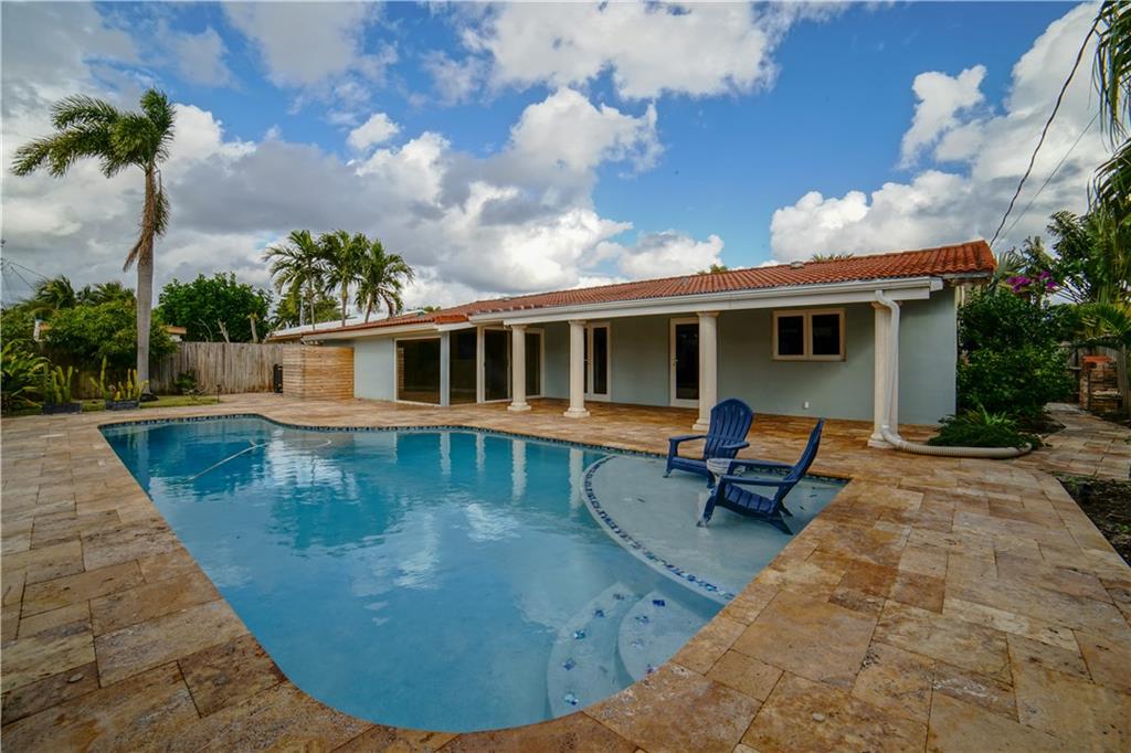 Move-in ready pool home with designer finishes. Located in Coral Highlands, just south of Imperial Point, this 3 bedroom/2 bath has an open living, dining and Florida Room for gracious entertaining. Eat-in kitchen has stainless steel appliances and quartz countertop. Highlights include impact windows and doors, Travertine floors in public rooms, and hardwood floors or carpeting in bedrooms. Backyard features a heated, saltwater pool; covered lanai and spacious Travertine patio.