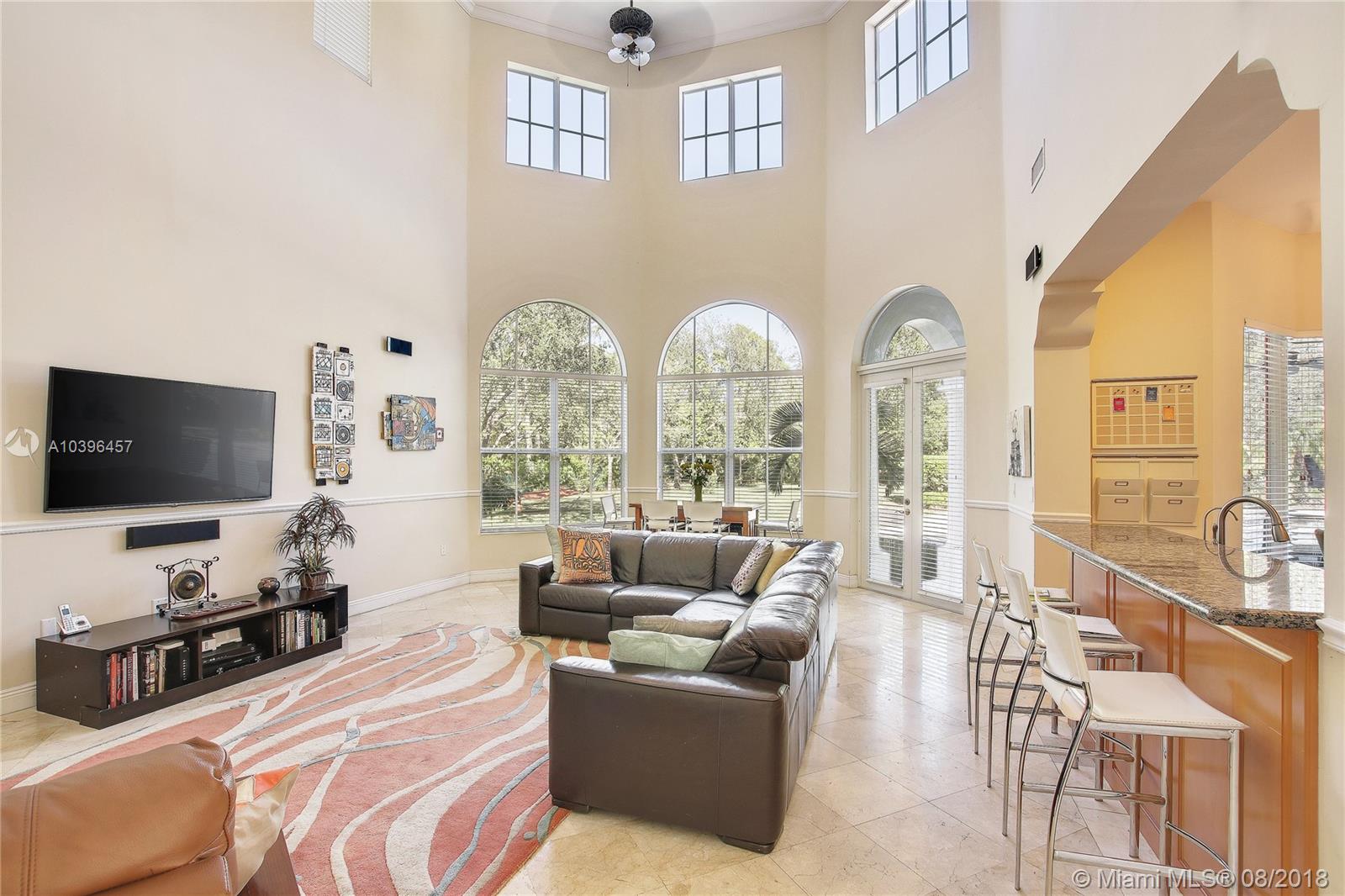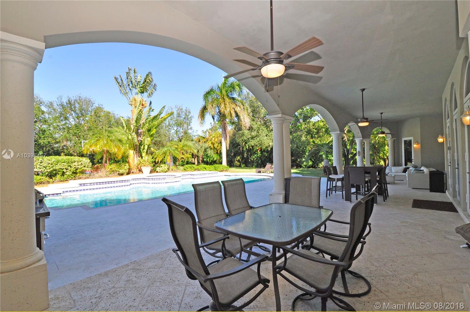 A majestic gated Pinecrest estate on a .9 acre oak-laden lot w/an exceptional floor plan & timeless elegance. Features include: impact windows & doors, 7 bedrooms (en suite), 7 1/2 baths, Family room, 3-car garage, heated Pool/Spa, & Sports Court. Grand foyer w/sweeping staircase, elegant Living room w/24 ft ceiling, Fireplace, & French doors that open to the expansive covered terrace & 51 ft heated pool & spa. Upstairs: Master suite w/a fireplace, sitting room, dressing room, 2 large walk-in closets, & access to a 63 ft balcony, plus 2 additional bedrooms. Downstairs: Guest room, Playroom, Home Theater,(potential in-law quarters); Staff rm, & 3-car Garage. The social areas enjoy 21+ ft ceilings & clerestory windows allow for natural day light. Room for a tennis court!