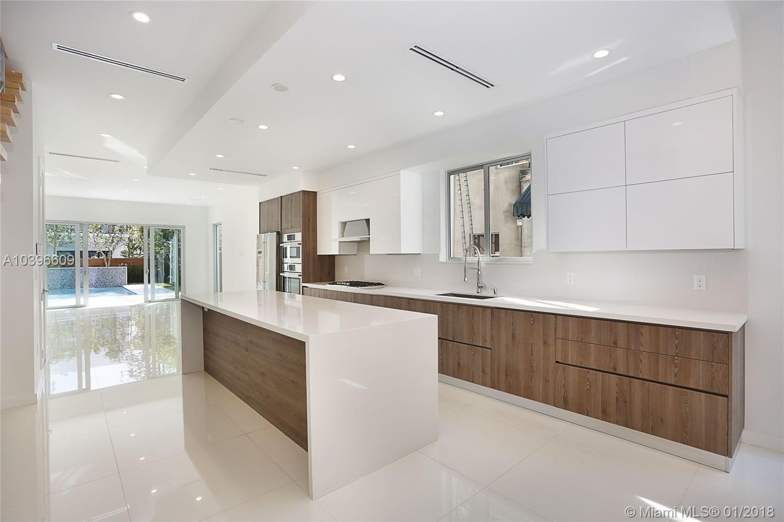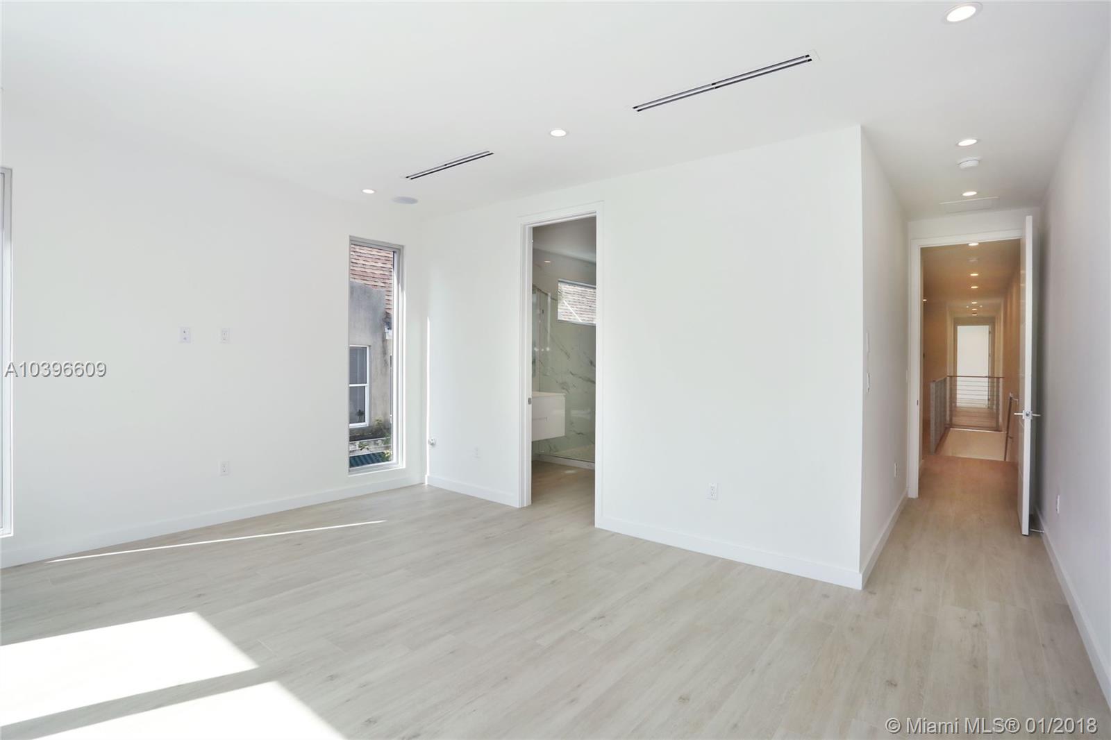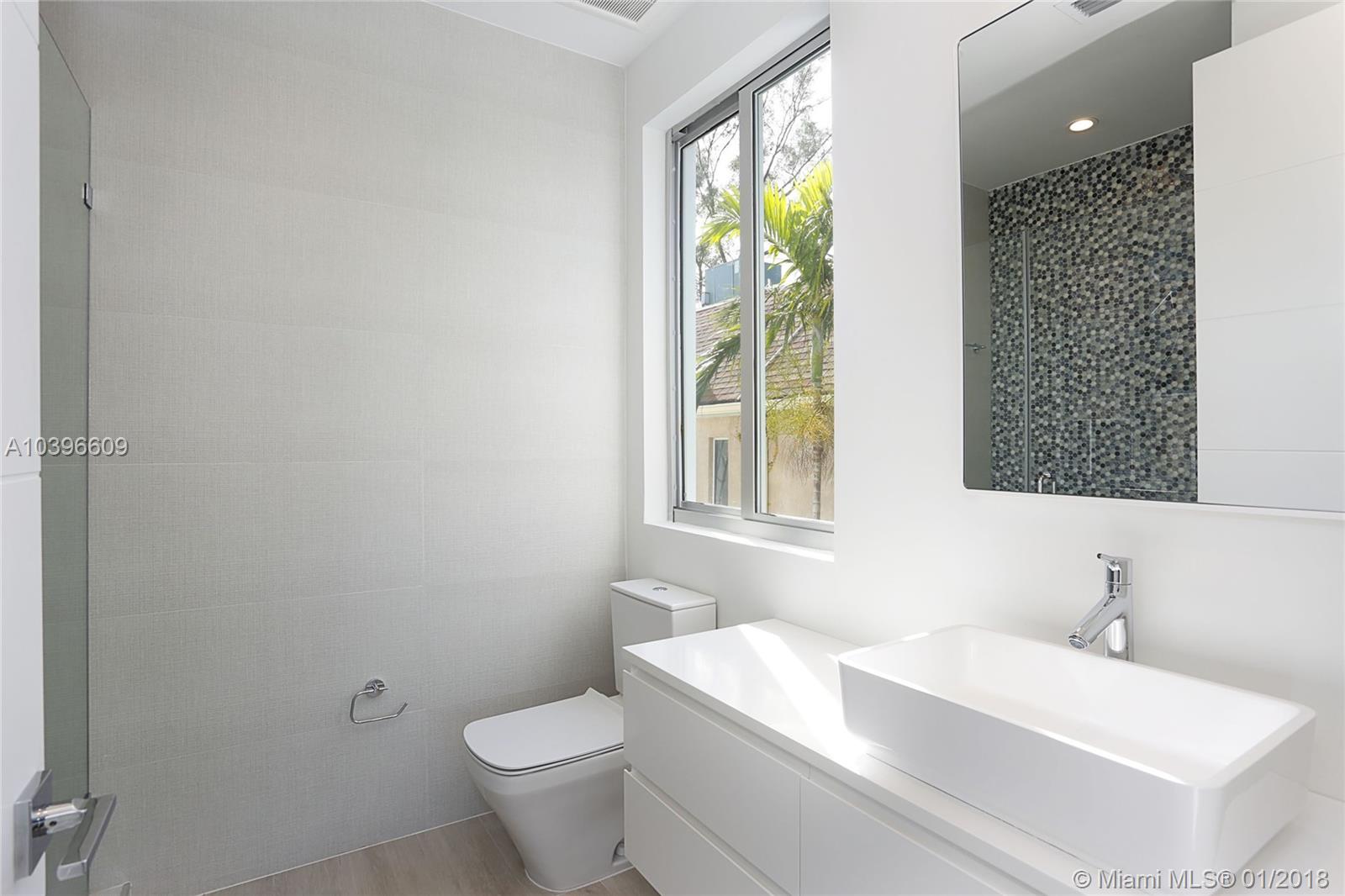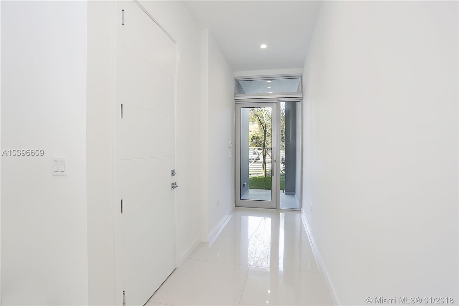 Brand new, contemporary town home with high end finishes. Four light filled bedrooms, three and a half baths. High ceilings on both floors. Porcelain wood tile throughout. Solid construction with concrete roof and concrete decking for the second floor. Finished floors in the garage and natural light through window. Top of the line European style cabinets. Bosch appliances. Over 30 feet of kitchen cabinets and counter. Gas cook top, water heater and dryer. LED lighting. Built in sound system. Expansive back yard with 10X20 pool that has a water feature. Two master bedrooms on the second floor, set up as split floor plan. Two more bedrooms with Jack & Jill bath. Easy walk to Downtown Coconut Grove, local restaurants, parks, shopping. Located at high elevation, not a flood zone!