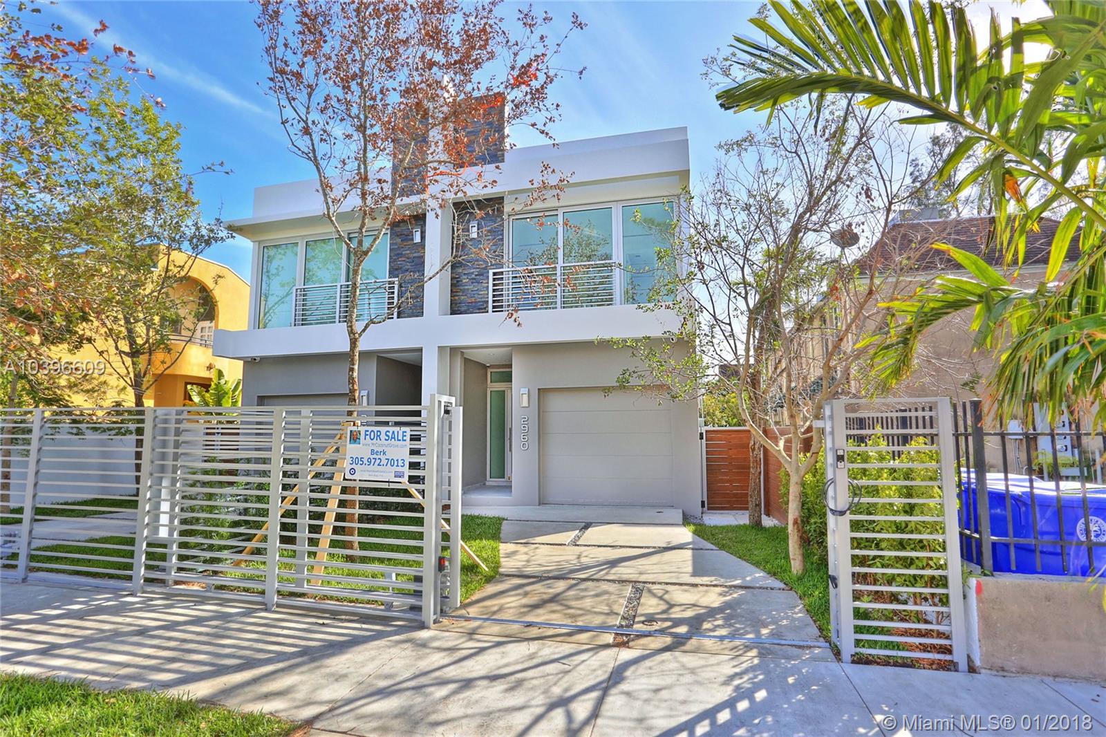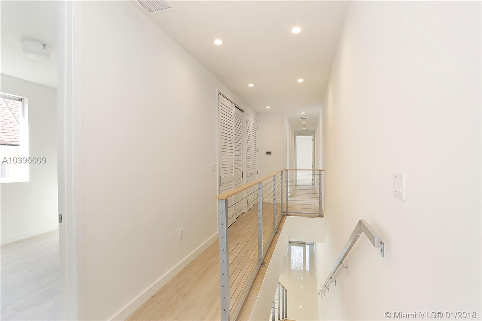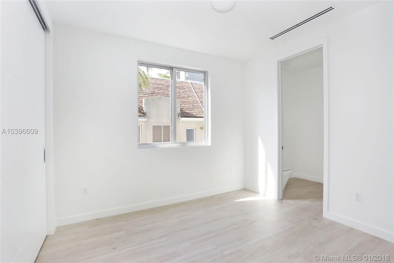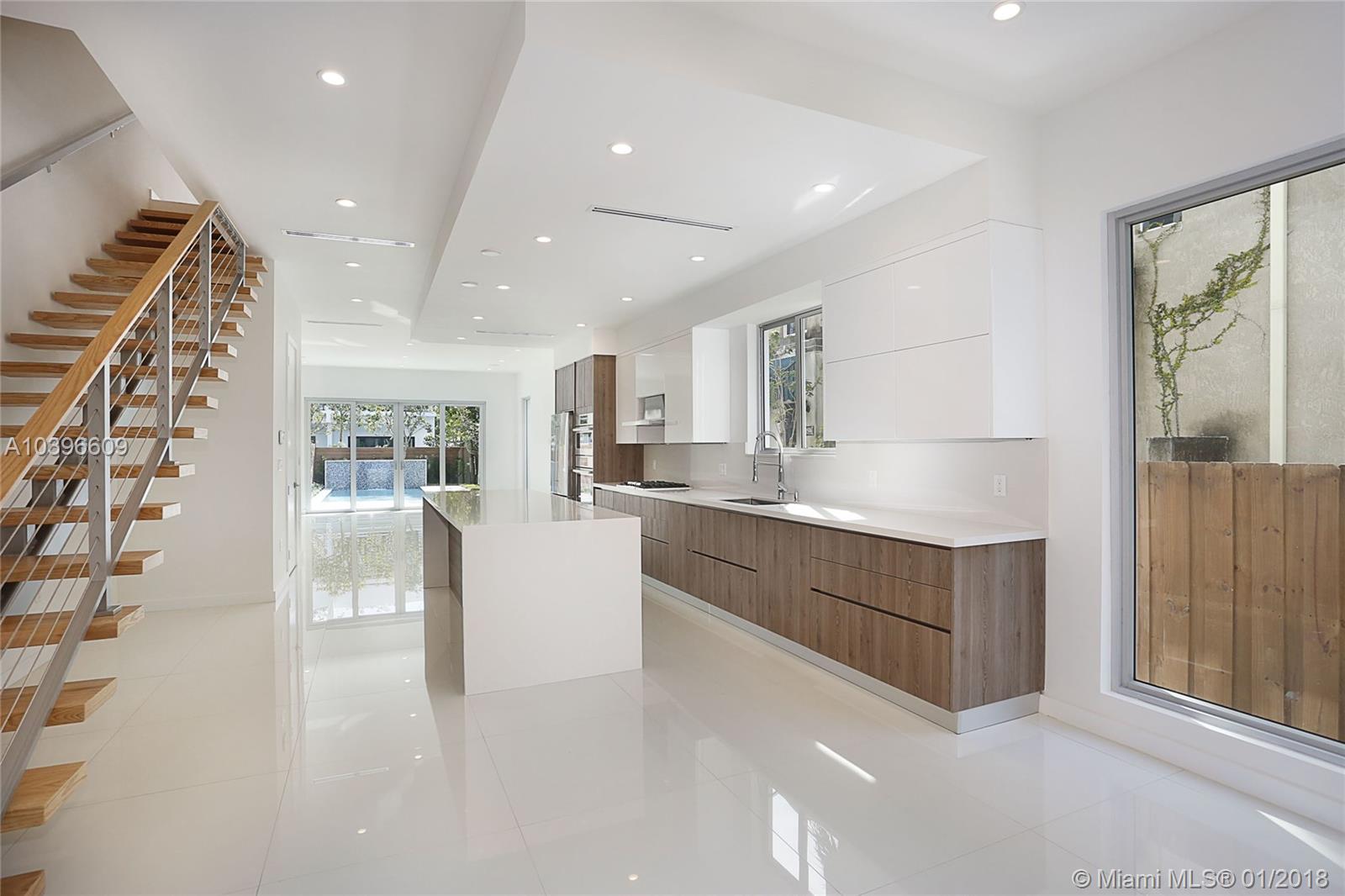 Brand new, contemporary town home with high end finishes. Four light filled bedrooms, three and a half baths. High ceilings on both floors. Porcelain wood tile throughout. Solid construction with concrete roof and concrete decking for the second floor. Finished floors in the garage and natural light through window. Top of the line European style cabinets. Bosch appliances. Over 30 feet of kitchen cabinets and counter. Gas cook top, water heater and dryer. LED lighting. Built in sound system. Expansive back yard with 10X20 pool that has a water feature. Two master bedrooms on the second floor, set up as split floor plan. Two more bedrooms with Jack & Jill bath. Easy walk to Downtown Coconut Grove, local restaurants, parks, shopping. Located at high elevation, not a flood zone!