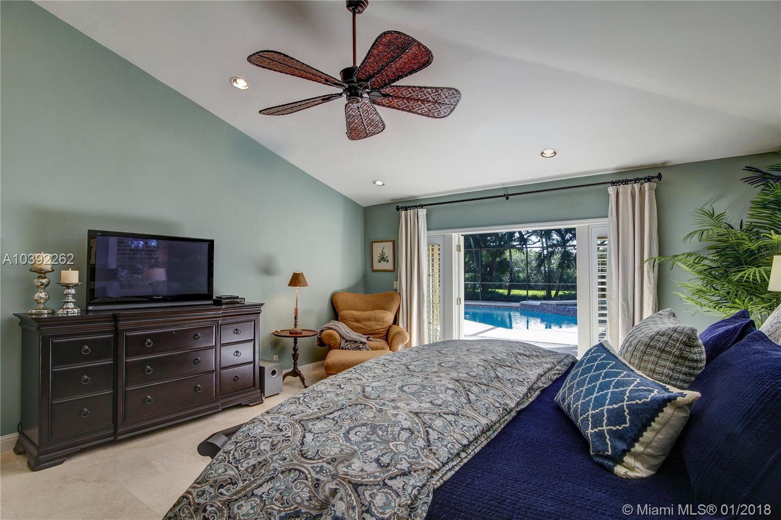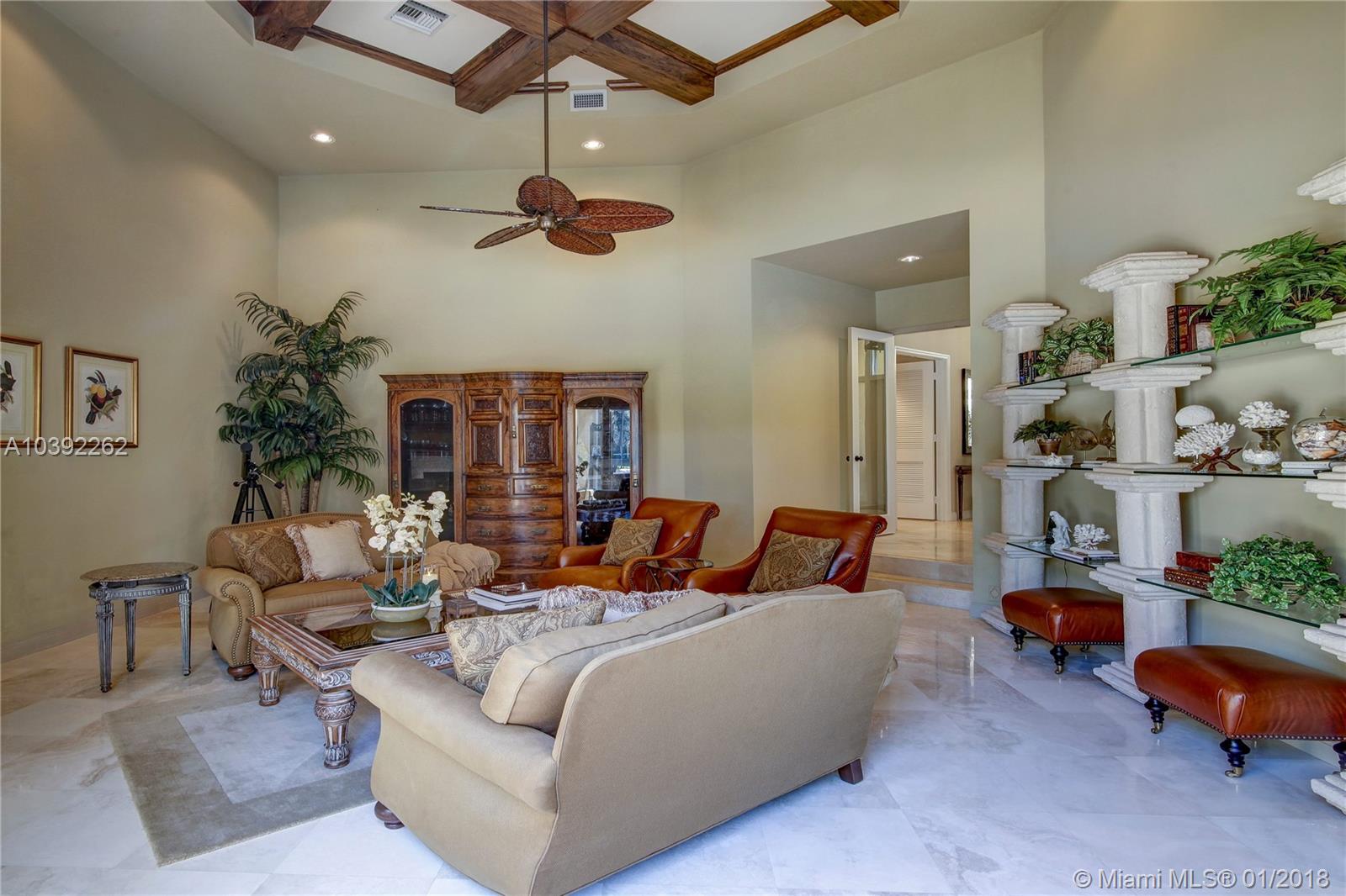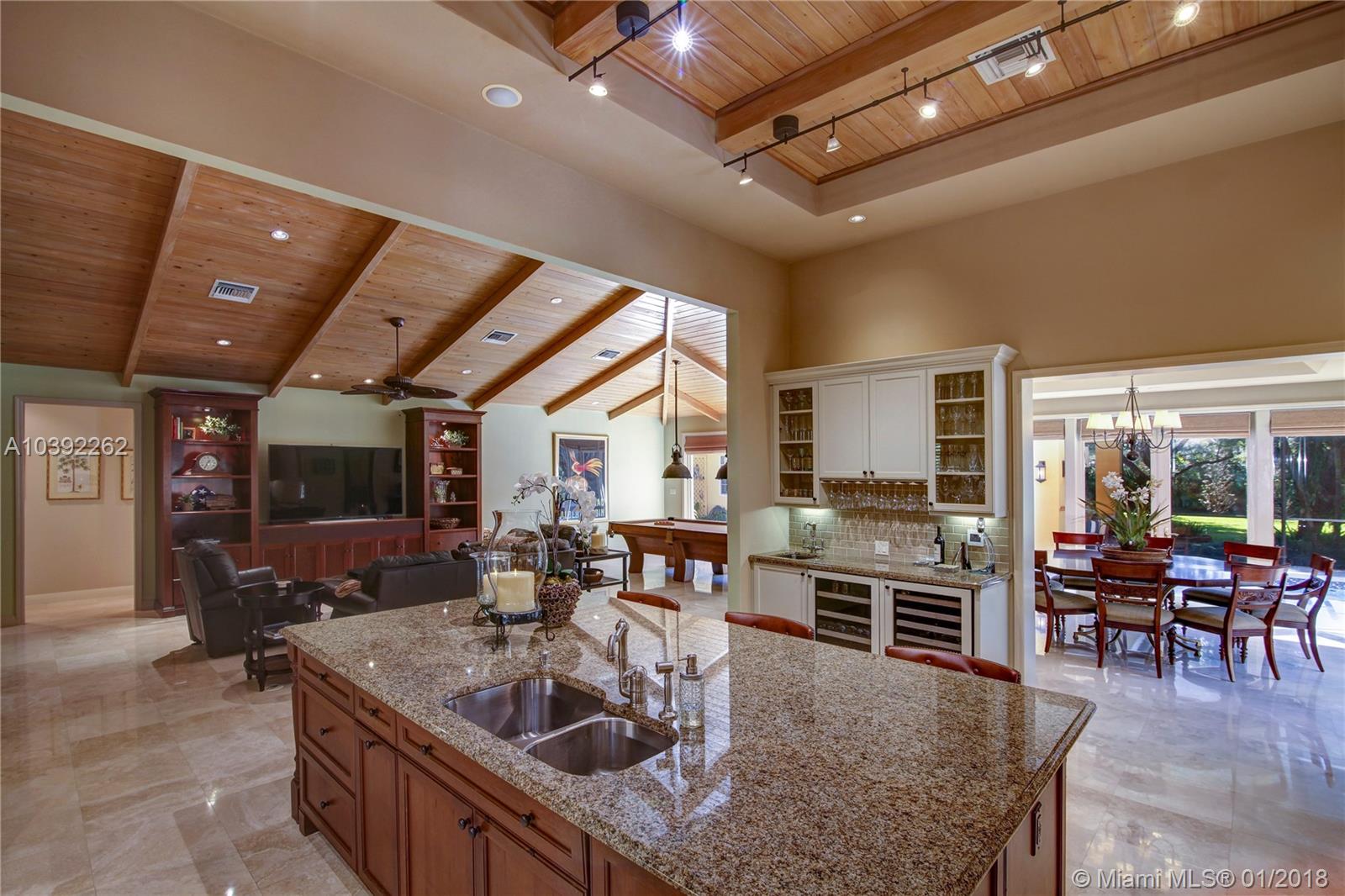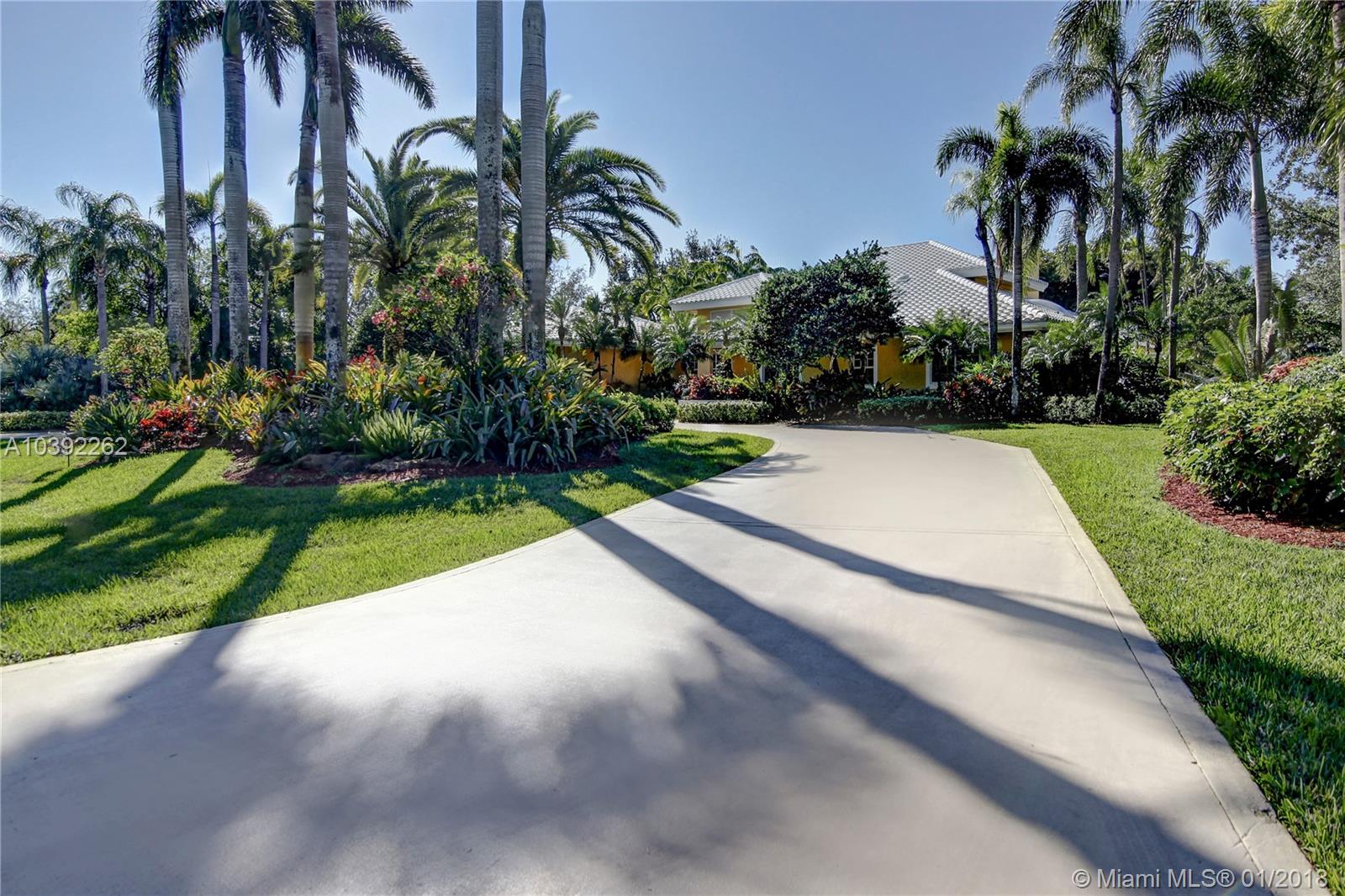 Luxury custom built home set back on a quaint cul de sac street. Enter this sprawling ranch via your circular drive with lush mature landscaping. Grand wood door welcomes you to this special entertainers delight home. Total Renovation in 2005. Enjoy gleaming marble floors with wood in all bedrooms. Step into your formal living room complete with fireplace, beamed ceiling and french doors to back yard oasis. Gourmet kitchen with oversized 10x5 center island, soaring ceilings, double ovens with sunny breakfast nook with windows overlooking pool. Custom office with tasteful built ins. Screened heated pool/spa with expansive deck including full summer kitchen, fountains, electric awning,lush tropical landscaping with lighting and Spacious guest house with full bath.