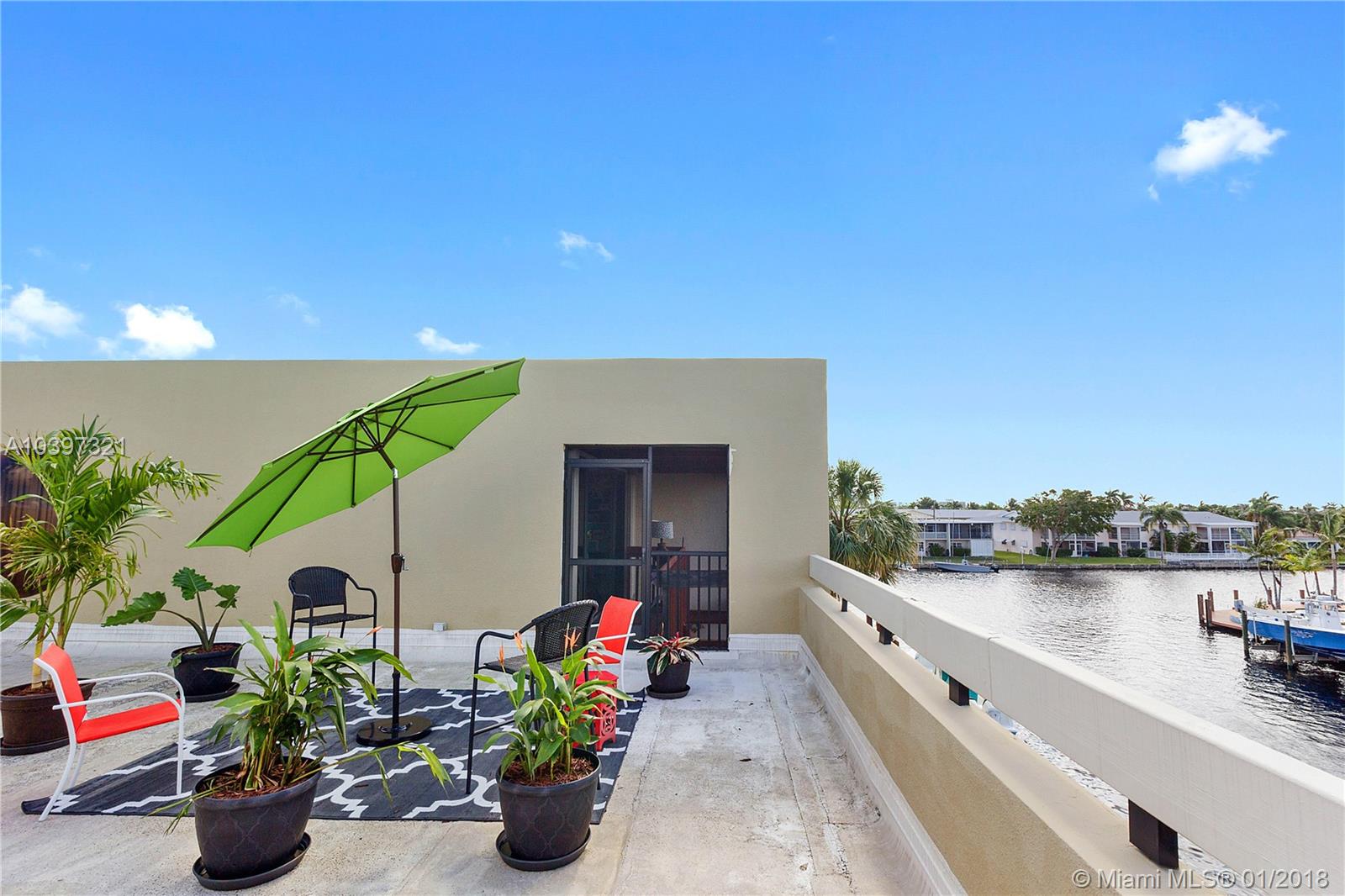 You will fall in love with this updated contemporary waterfront town home located in Nobel Point, a gated community in the heart of Pompano, steps from the beach. Nobel Point offers its residents 2 tennis courts, a clubhouse with heated resort style swimming pool, hot tub, sauna and fitness center. This particular unit features a deeded dock for your vessel as well as a bonus room used as a workshop. Upon entering, you will find a gourmet style kitchen with granite counter tops and stainless steel appliances, dining area and living room with screened lanai overlooking your dock and the waterway. On the 2nd floor, 2 expansive master suites with on-suite baths. One of the master suites features a screened balcony overlooking the downstairs lanai and canal with access to your rooftop terrace.