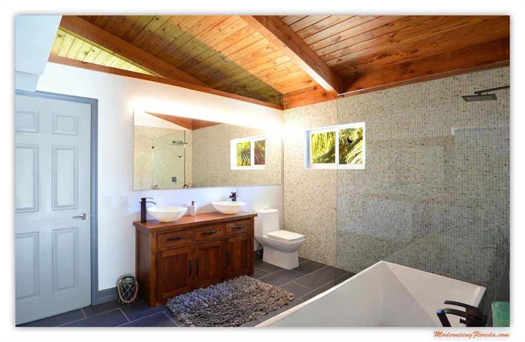 ACCEPTING SERIOUS BACKUP OFFERS. HGTV designer dream home! Beachy-modern luxury 4/2 with $100k+ in renovations for the most discerning buyer. New roof, Impact windows/doors, Dade Pine/Cedar cathedral ceiling, custom kitchen. 2nd floor master with designer ensuite, his/her closets, huge loft w/laundry. Secluded park-like yard with in ground pool, covered patio, sprinkler system, exotic plants/fruit trees. End unit in highly sought after Villages of Palm Aire, community dog park.