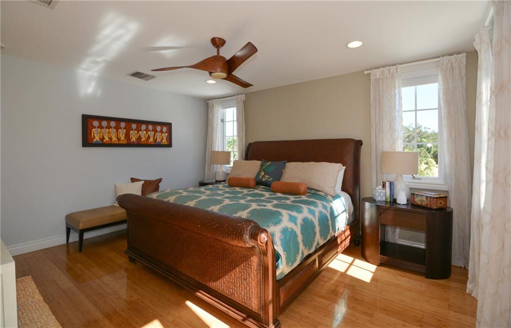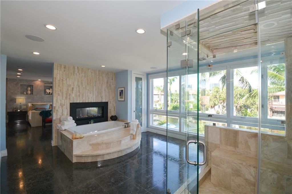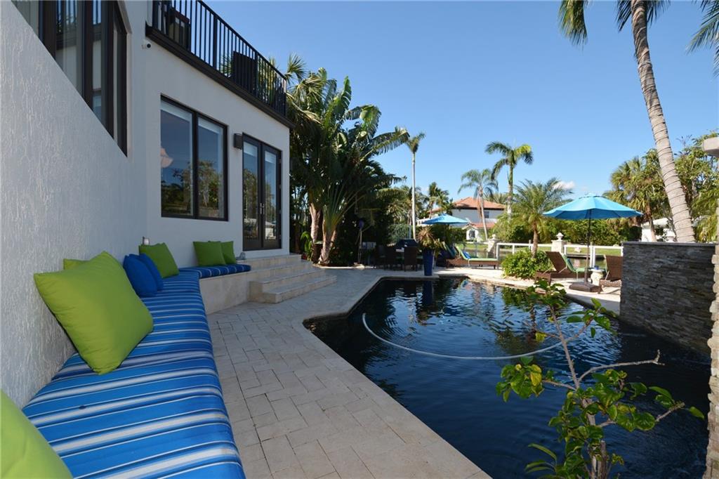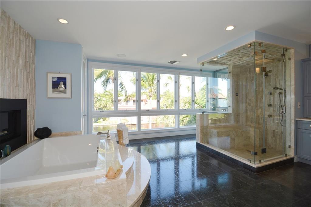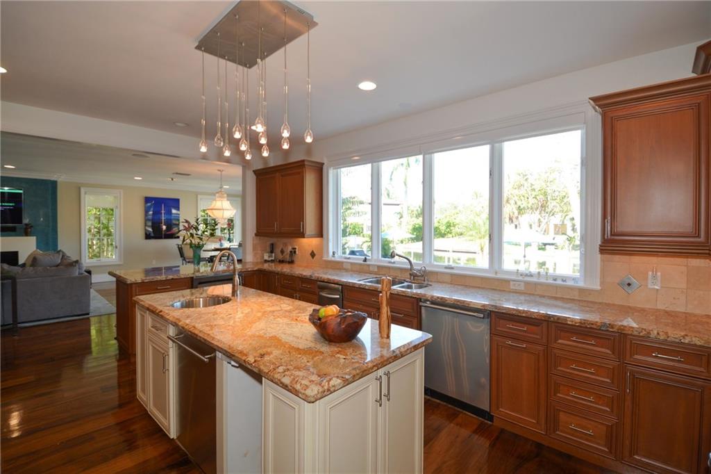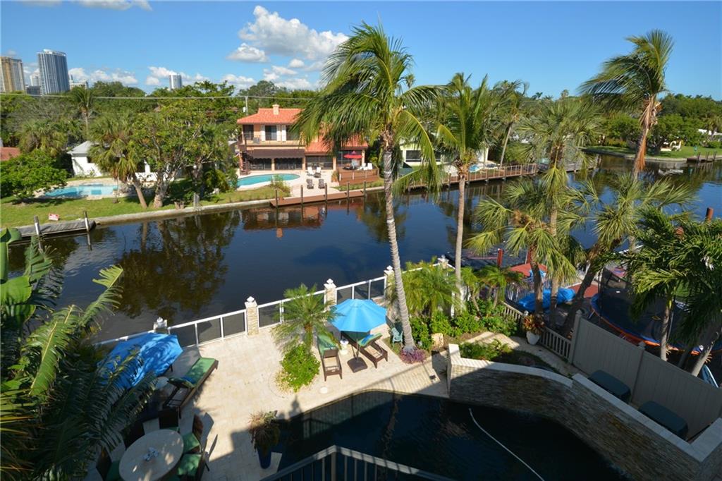 JUST REDUCED AGAIN!! SELLER MOTIVATED! Custom built 3 story w/huge master & expansive spa bath, 2 fireplaces, elevator, lg gourmet kitchen, dining rm & lg living area. 3700+ sq ft, 2 car garage, impact windows, lagoon style heated salt water pool & hot tub, 52’ ocean access waterfront & full house generator! Designer features: Koa Wood Plank & Bamboo floors. Audio system & sound insulated walls throughout! Bonus 3rd flr entertaining rm w/huge balcony & great city views! Renovated & pro decorated in 2014.