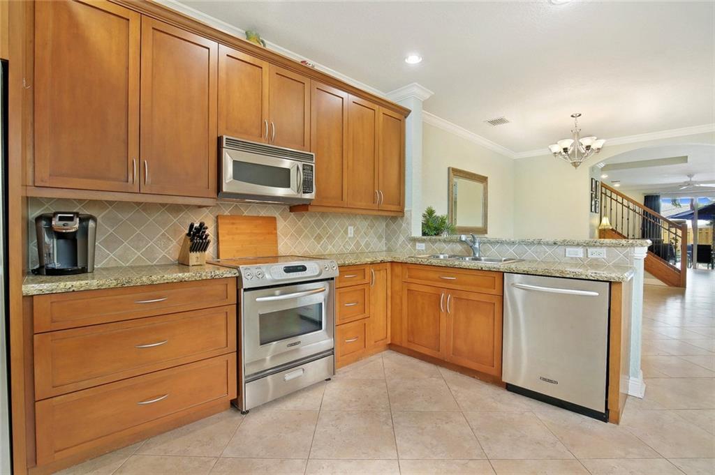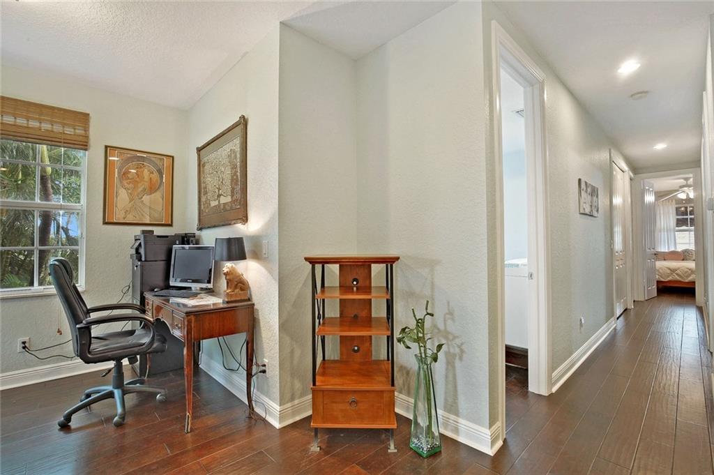 Stunning fee simple Lake Ridge 3BR/2.5BA townhome minutes from downtown and beach. Features private, landscaped pool w/new fence, 2 car garage, and loft area for office. Gated entrance w/covered front porch. Diagonal tile on 1st floor, hardwood on 2nd level. Recently painted w/crown molding. Impact windows/doors. Sunlit family room with views of covered patio and pool. Eat-in kitchen w/granite counters, SS appliances & pantry. Laundry on 2nd floor. Central vac. No HOA. Pet friendly. Security system.
