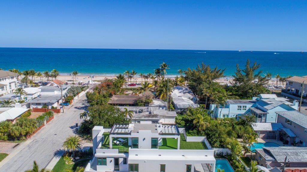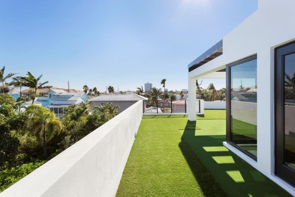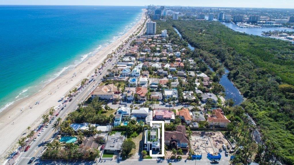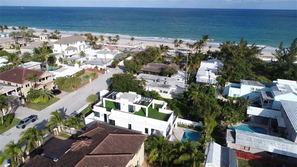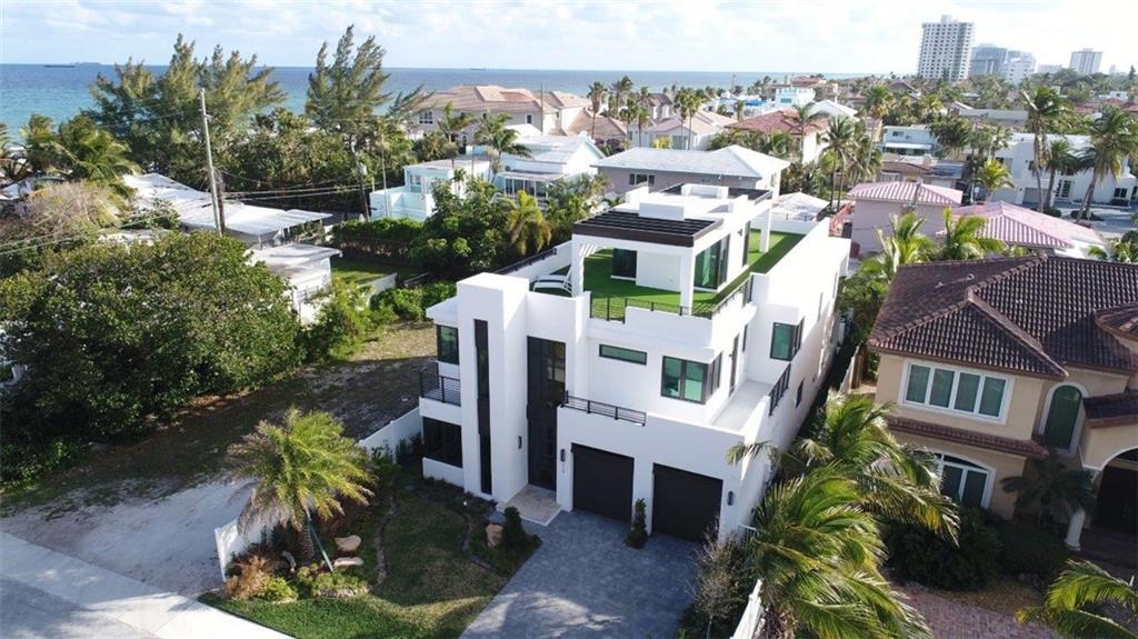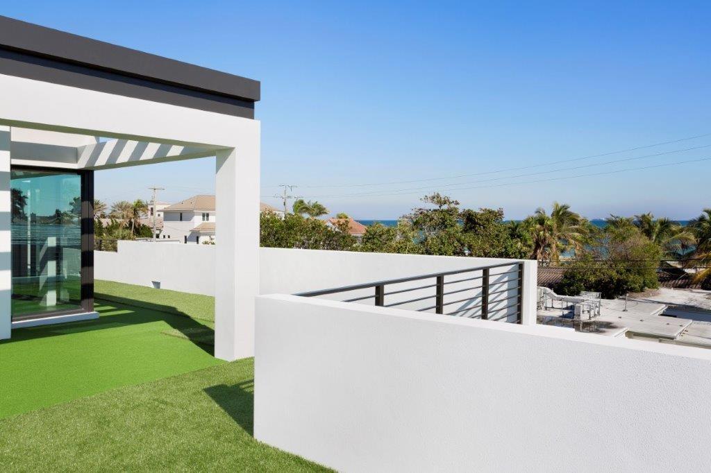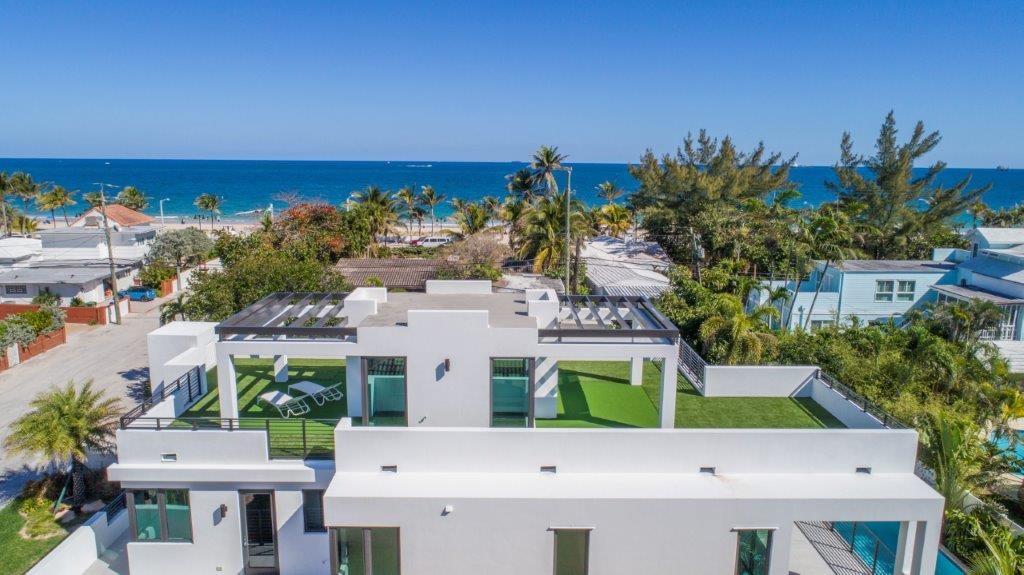 Five bedrooms, five and a-half baths, and a two-bay garage are included in the comfortable floor-plan totaling 6,755+/- square feet, also available furnished. Airy spans of impact-rated glass let the natural light shine in, while volume ceilings add to the sense of spaciousness, grounded by wide-plank oak floors. Done in Porcelanosa tile, the baths include fittings and fixtures by Grohe, Blanco, Kohler, and Villeroy & Boch. Other amenities include LED lighting, two-zone air conditioning, and a central vacuum system. There is elevator access to all three levels including the roof-top entertainment/lounge deck, equipped with electric/water service, where the panoramic outlook takes in a view of the ocean.