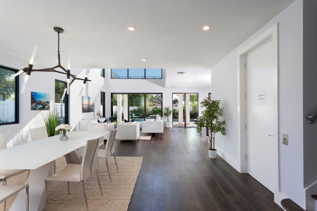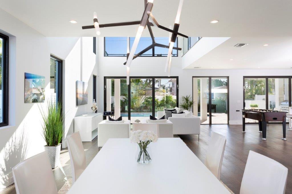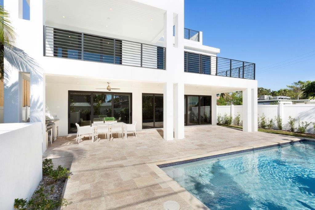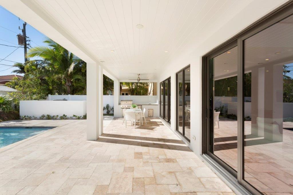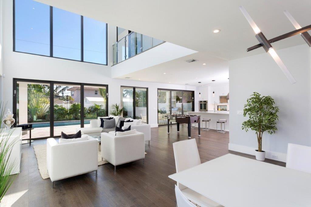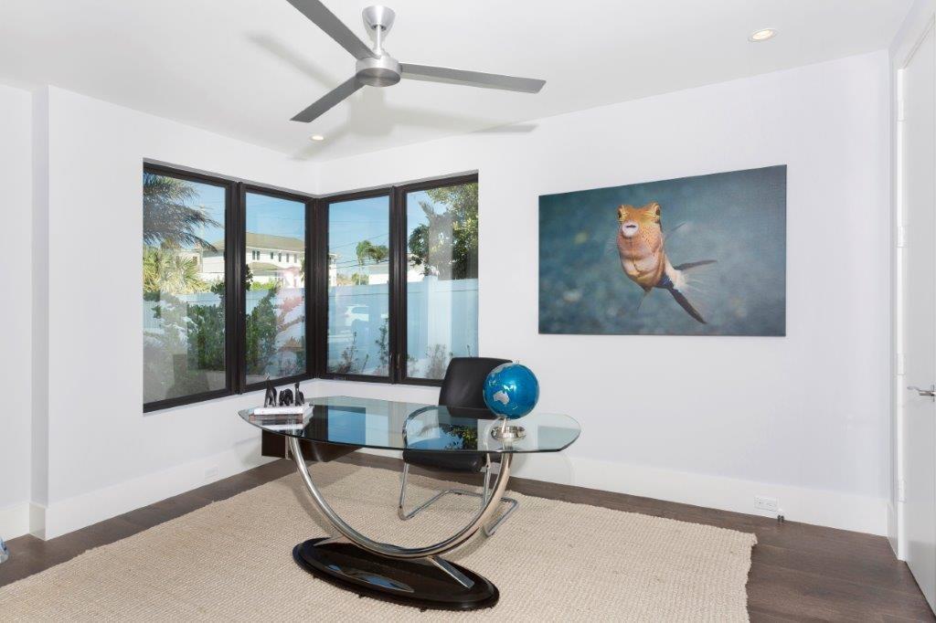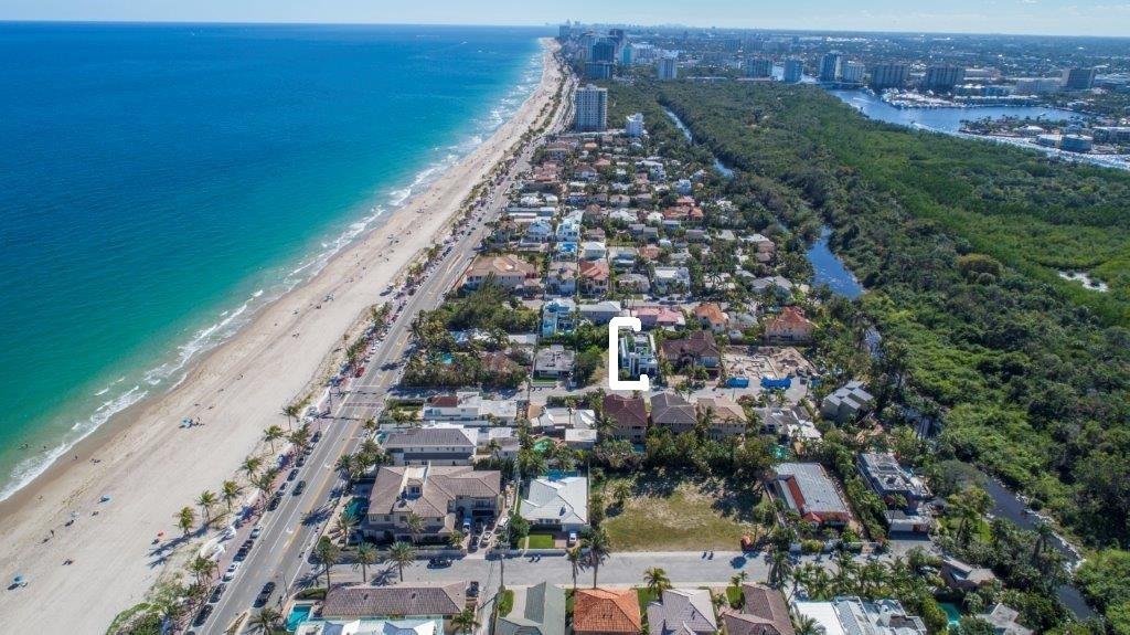 Five bedrooms, five and a-half baths, and a two-bay garage are included in the comfortable floor-plan totaling 6,755+/- square feet, also available furnished. Airy spans of impact-rated glass let the natural light shine in, while volume ceilings add to the sense of spaciousness, grounded by wide-plank oak floors. Done in Porcelanosa tile, the baths include fittings and fixtures by Grohe, Blanco, Kohler, and Villeroy & Boch. Other amenities include LED lighting, two-zone air conditioning, and a central vacuum system. There is elevator access to all three levels including the roof-top entertainment/lounge deck, equipped with electric/water service, where the panoramic outlook takes in a view of the ocean.
