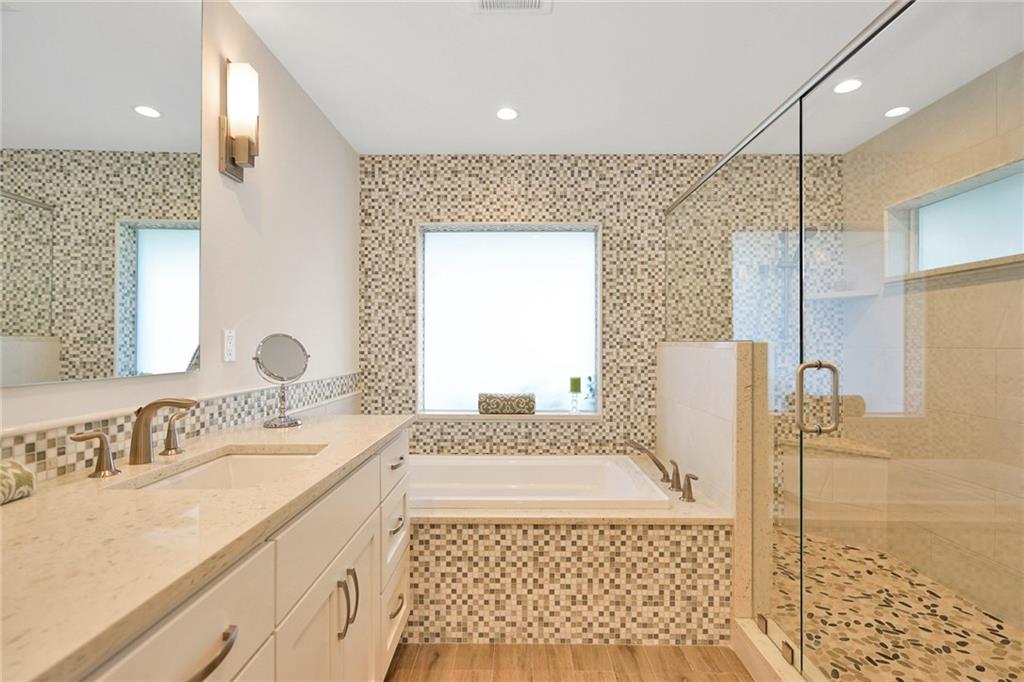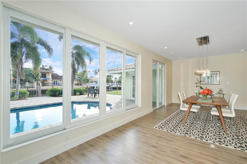 Extensive new renovations all done w/permits. Large 4BR/4BA pool home (4000+ sq ft), & 85 ft waterfront w/no fixed bridges. Huge master 1st floor, open floorplan and living spaces. Jr Master 1st floor also. Awesome water & pool views the moment you enter. Recent updates, 3 zones include, HVAC heat pumps, impact glass, porcelain floors, LED lighting & sewer lines replaced. New gourmet kitchen w/ white shaker cabinets, oversize depth quartz counters, & Thermador appliances w/ 6 burner cooktop.