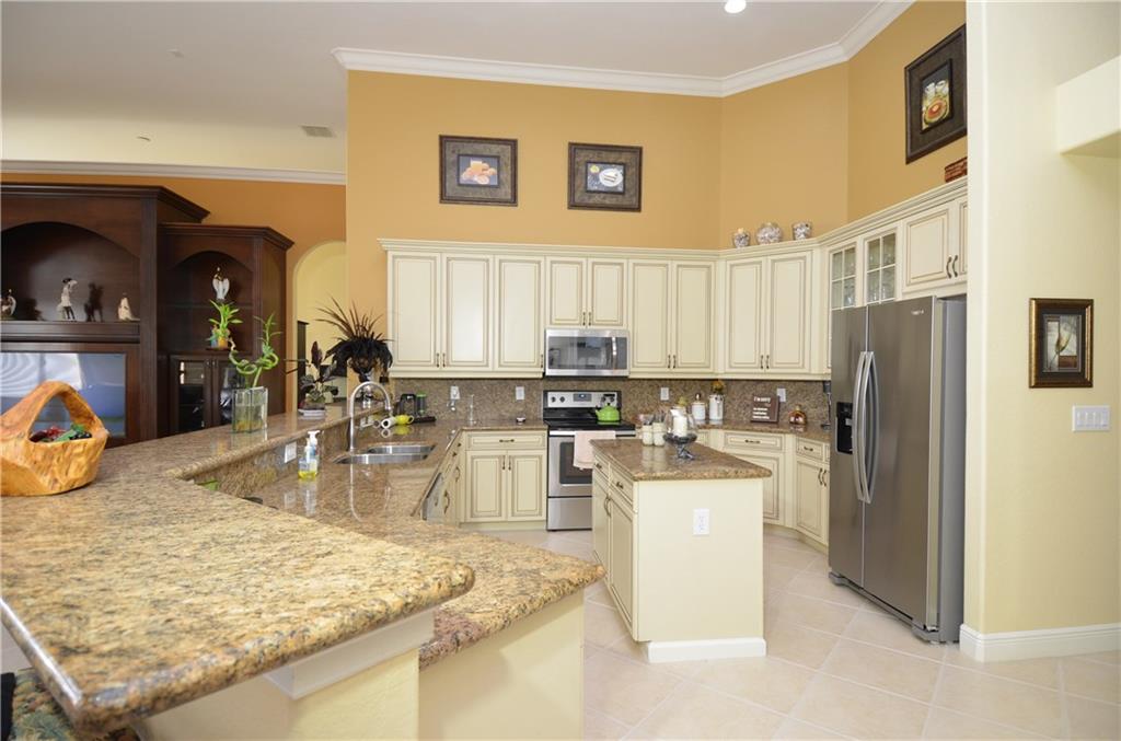 Not your typical Riverstone house, this home is like new with unique upgrades. The formal dining room has been exquisitely built out, there is a additional game/play/meditation room off family room is 20x12. Spectacular lake lot, room for magnificent pool Located 3 houses away from cul-de-sac. Kitchen:Stainless steel appliances, granite counters, upgraded alabaster colored wood cabinets are so elegant. Etched glass cabana door. Master bedroom opens to patio, huge master bath and dual walk-in closets.