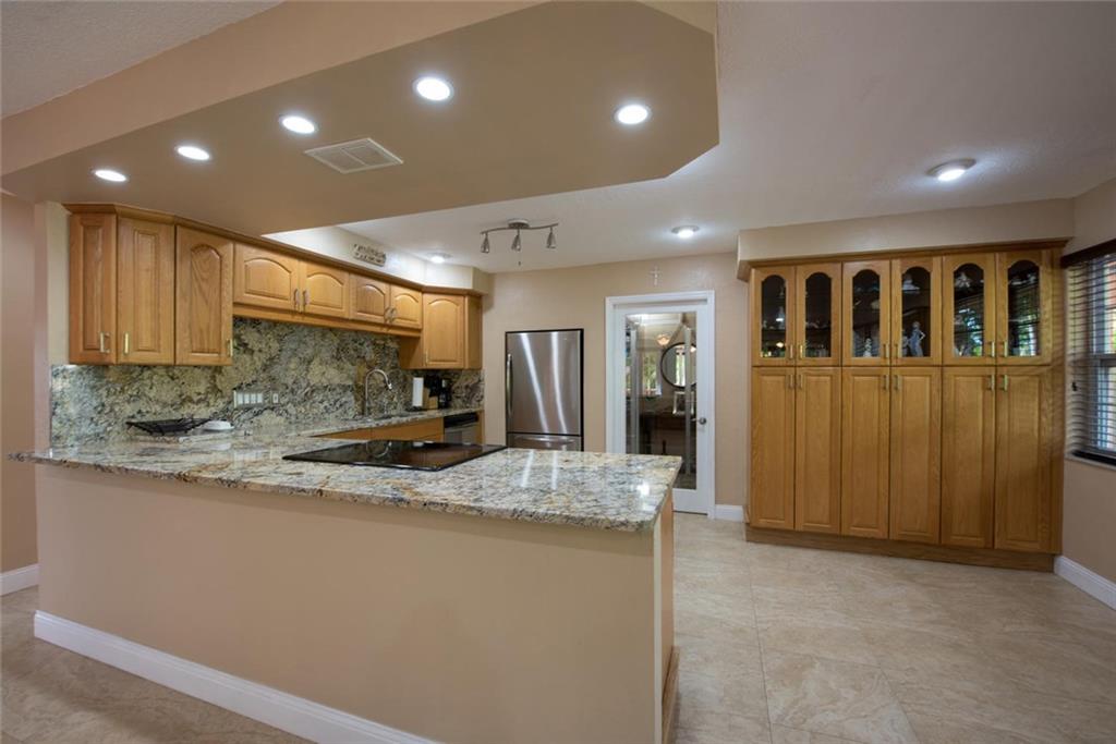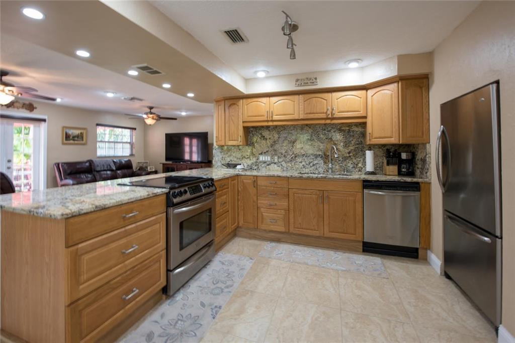Fully renovated home with roof that is less than 2 years old, new AC, new alarm system. This gorgeous house has new tile flooring throughout, large open kitchen w/granite counters, wood cabinet, stainless steel appliances, including convection oven! Upgraded bathrooms. Indoor laundry with storage. Open and bright living area. Third bedroom currently used as den with double doors, easily used as bedroom with good closet space. Private screened patio off of the master bedroom. Too many upgrades to list!
