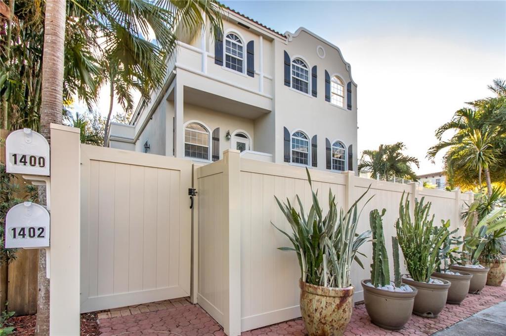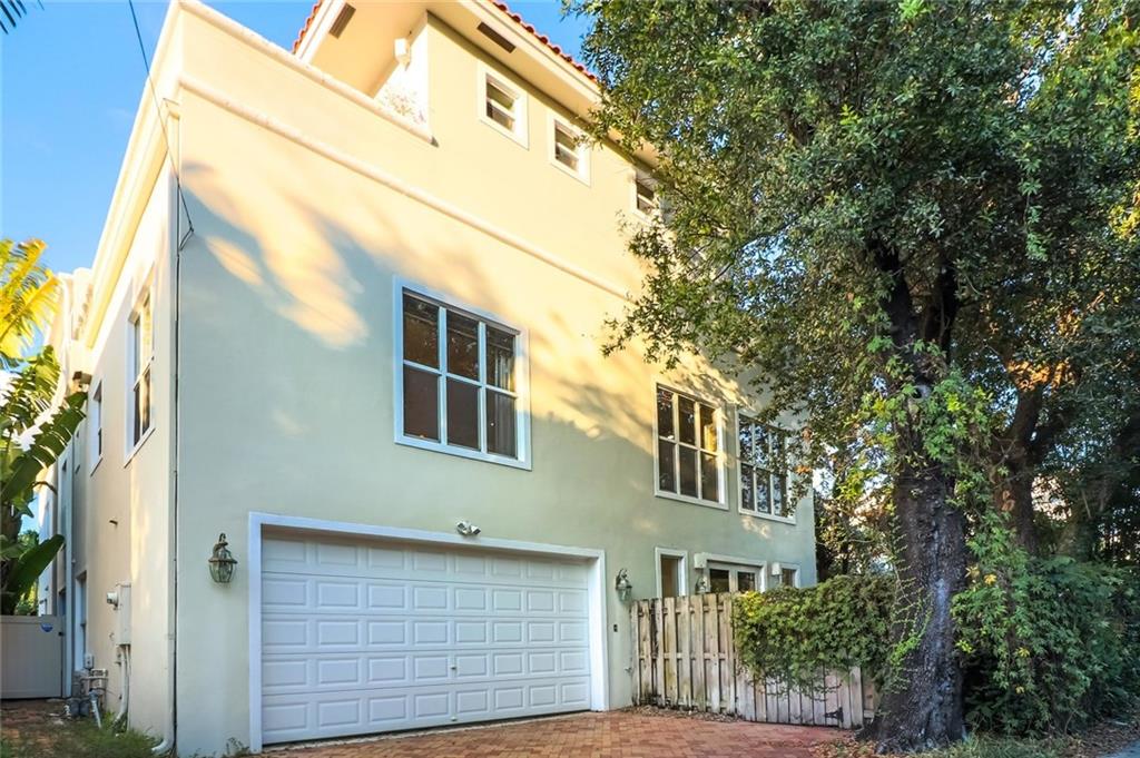 LOCATION! Steps to Las Olas. Stunning 3 story Capetown Style 2 unit Town Home with no HOA. Very Large 3 bed, 3.5 bath with Master bedroom on 1st and 3rd floors. Expansive 2nd fl. entertaining area w/oversized Thermador gas cooks kitchen, with wrap-around counters, walk-in pantry & walk-in laundry...including hardwood floors & floor to ceiling stone fireplace! large courtyard, mature oak trees, 2 car garage, large 3rd fl. east & west Verandas ready for a hot tub, PRICED OVER $100K BELOW CURRENT APPRAISAL.