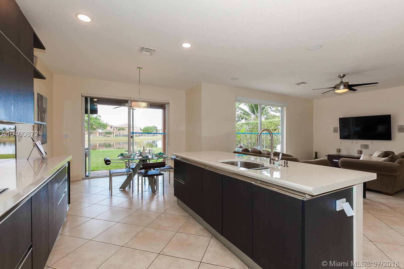 BEAUTIFUL AND SPACIOUS TWO STORY HOUSE ON THE LAKE, READY TO MOVE IN. FRESHLY PAINTED. BRAND NEW OPEN ITALIAN KITCHEN WITH SPACIOUS ISLE AND TILE THROUGH FIRST FLOOR. FAMILY ROOM AND KITCHEN HAVE SLIDING DOORS TO THE BACK YARD FACING THE LAKE WITH PLENTY OF LIGHT. ONE BEDROOM/BATHROOM IN THE FIRST FLOOR. WOOD ON STAIRS WAYS AND SECOND FLOOR HALLWAY. HUGE MASTER BEDROOM FACING THE LAKE FOR MORE PRIVACY. CARPET FLOOR, HIS/HERS CLOSET. SEPARATED SHOWER AND ROMAN BATHTUB. JACK AND JILL IS SHARED BY FOURTH AND FIFTH BEDROOM. SPACIOUS LAUNDRY ROOM. COMMUNITY IS GUARD GATED WITH CLUBHOUSE AND POOL. HOA INCLUDES INTERNET AND COMCAST BASIC CABLE. BEST OF WESTON WITH SCHOOLS A+. MUST SEE IT!